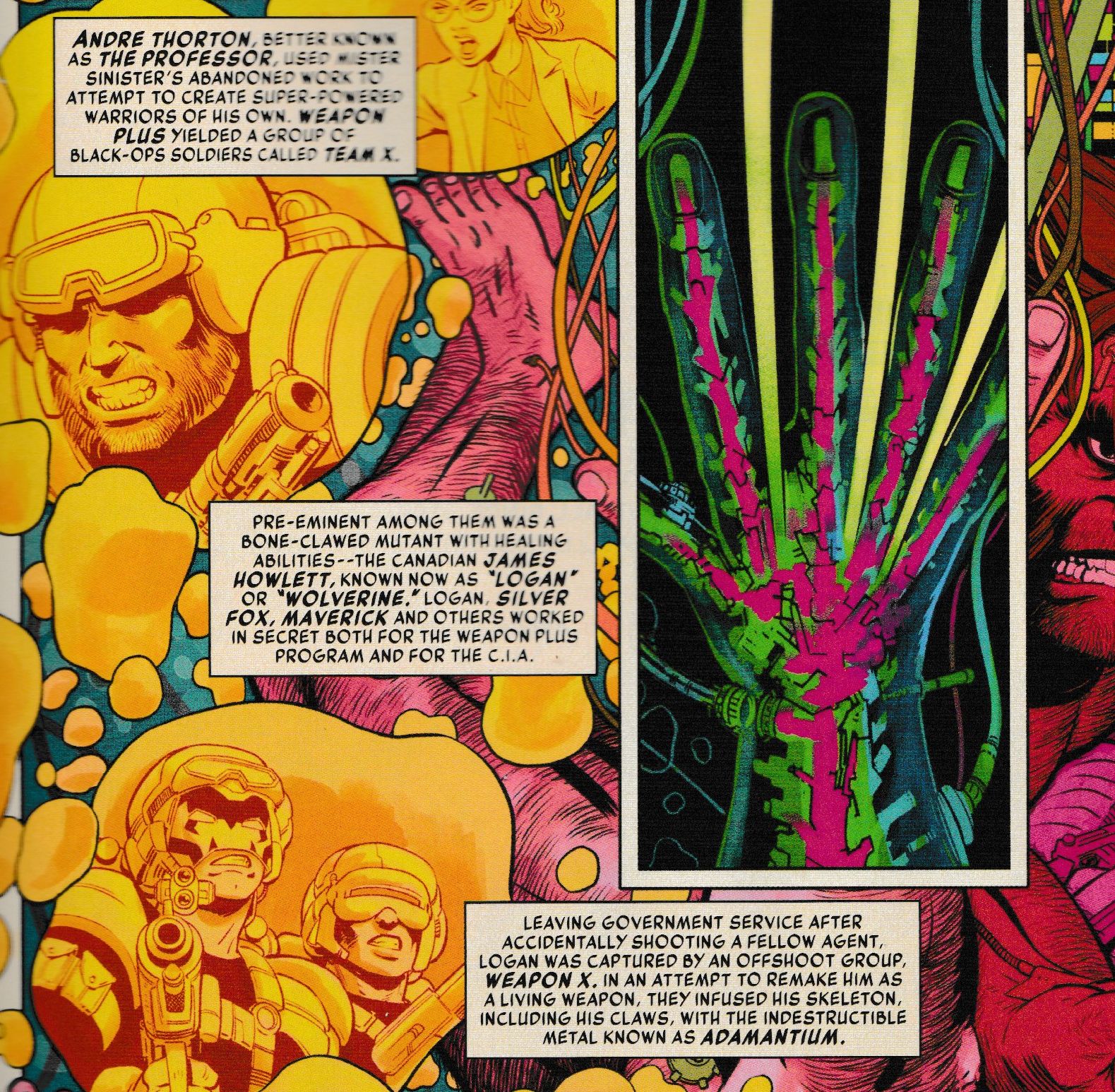 This is just one example of the many threads being tied together into new cords, including picking up on bits from other continuities. We saw in the Fox X-Men movies that Nathaniel Essex, known to us as Mister Sinister was involved in the origin of Wolverine as Weapon X. Well, that seems to have inspired another new point of continuity in History #2…