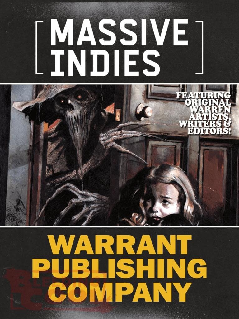 Warrant Publishing Company specialises in horror comics and illustrated magazines. It focuses on reviving the style and spirit of the classic Warren Publishing titles from the 1960s and 1970s (such as Creepy, Eerie, and Vampirella), which were known for their black-and-white horror anthology stories, dramatic artwork, and magazine format, free of the Comics Code Authority restrictions. Michael Hoffman used to publish his Eyrie magazine takeoff of Eerie through them, but now uses his own name to do so as Hoffman International. While Warrant Publishing continues its Vampirella takeoff as Vampiress Carmilla and their own Frank Frazetta covers. But both sit side by side, with their own period-appropriate horror anthologies in the Massive Indies section of Lunar Distribution and so they do here as well… almost as if readers can jump from one to the other and back again, willy nilly… well, willy or nilly. Your choice.