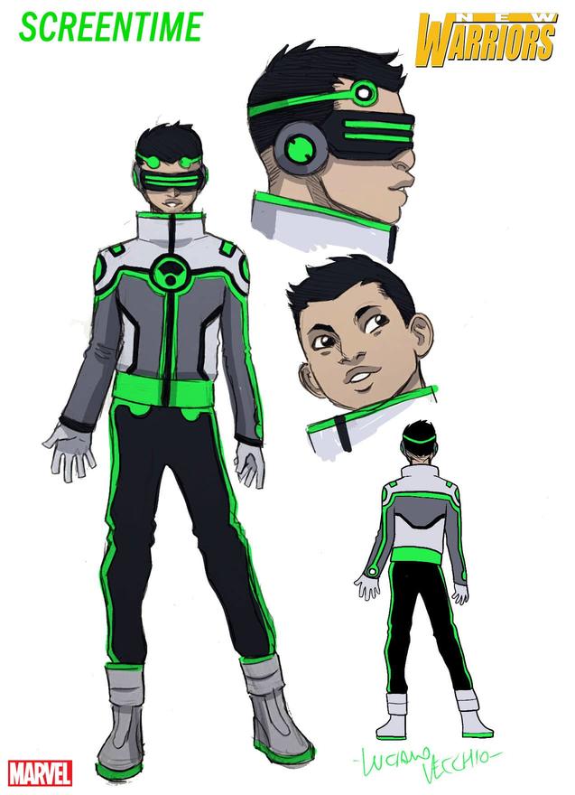 "I wanted to have teen characters who felt as "now" as the New Warriors did in 1990," explains Kibblesmith. "The New Warriors have been zeitgeist characters from the beginning, you get edgy skateboarding Night Thrasher in the '90s and the Reality TV team in the 2000s, and now in 2020, we have New Warriors who have never grown up without the Internet, and one character who appears to essentially live inside it.