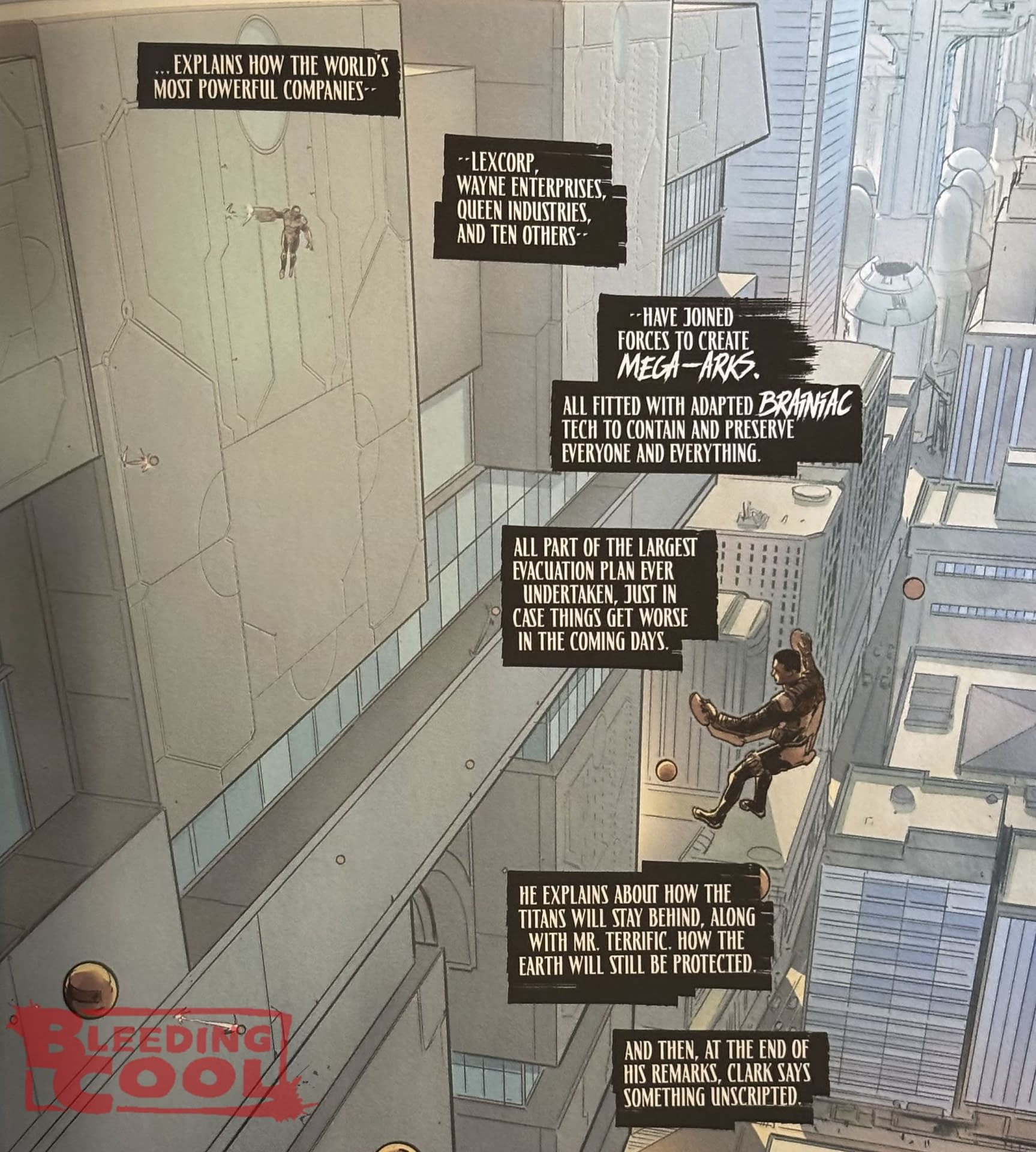 - Superheroes, governments, and big business unite to oversee Earth's mass evacuation and survival