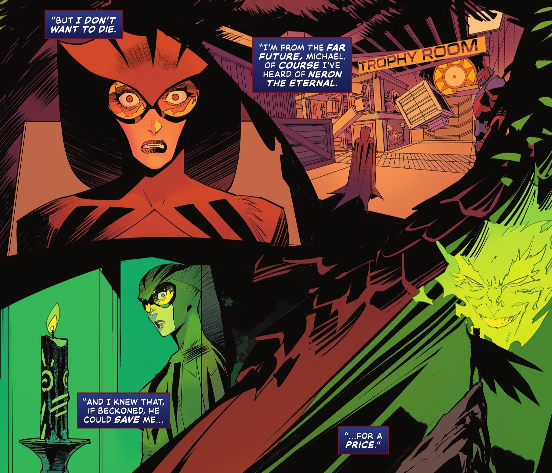 So no, Owlwoman doesn't particularly want that either, better the devil you know… better Neron than Darkseid, because as we know…