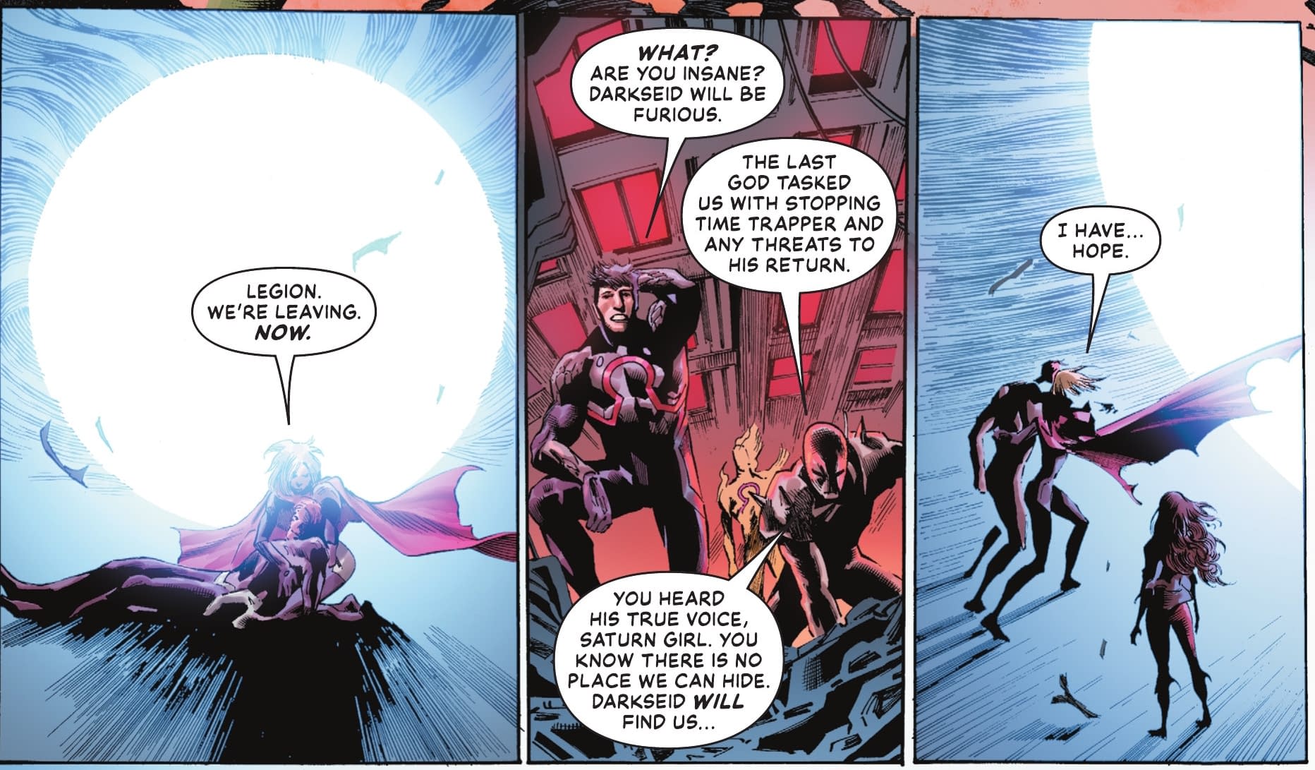 - Darkseid gains control of Earth, while the Absolute Trinity and Legion serve as his minions in the chaos.
