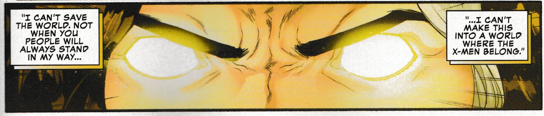 And so, at the conclusion of the issue, so SPOILERS ON everyone, Nate Grey, realizing that the X-Men always win no matter what, decides to do something about that.