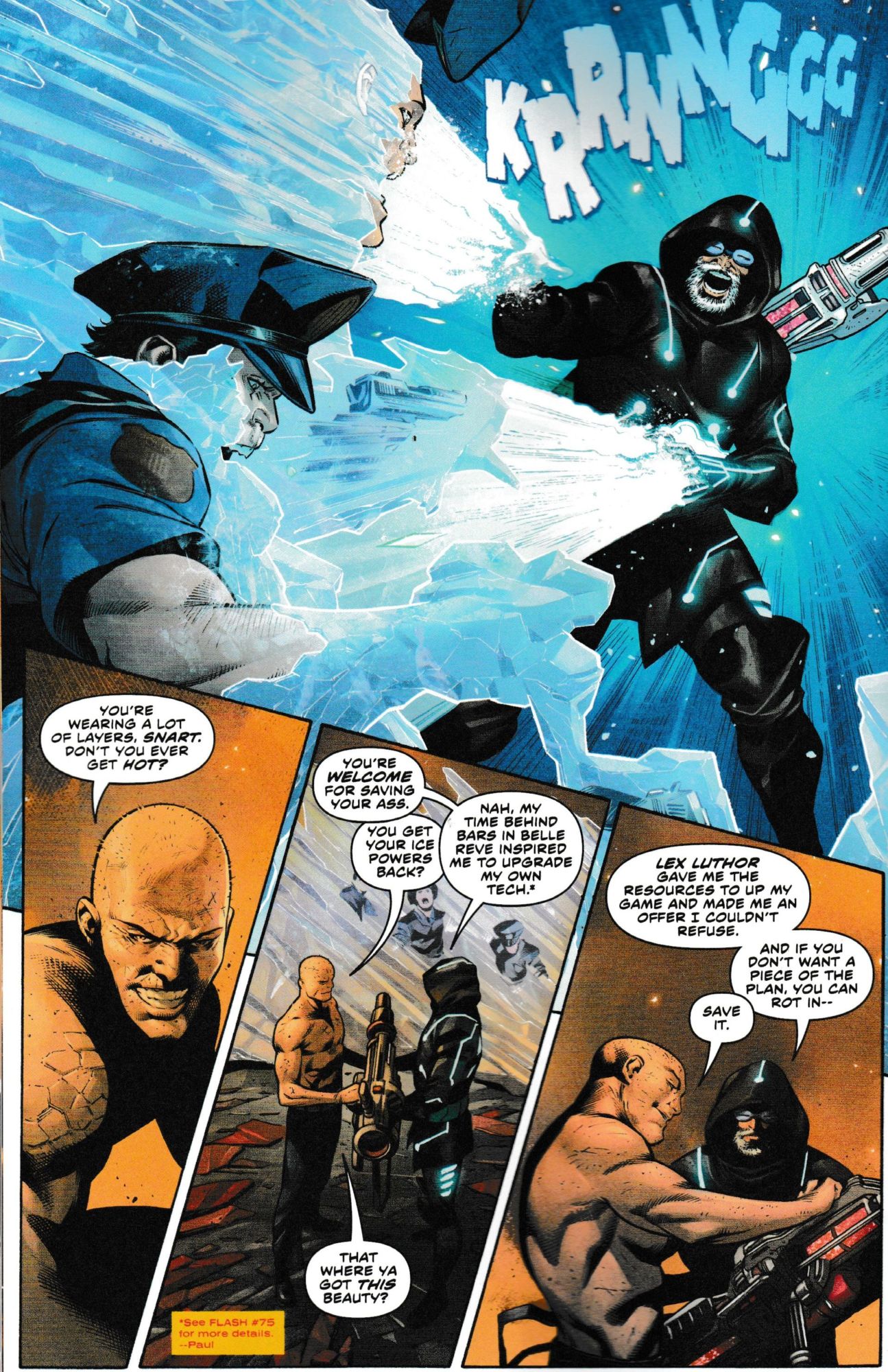 But we also get to see Luthor's gifts in action within the comic too, as Captain Cold begins to spread the love. Or the hate.