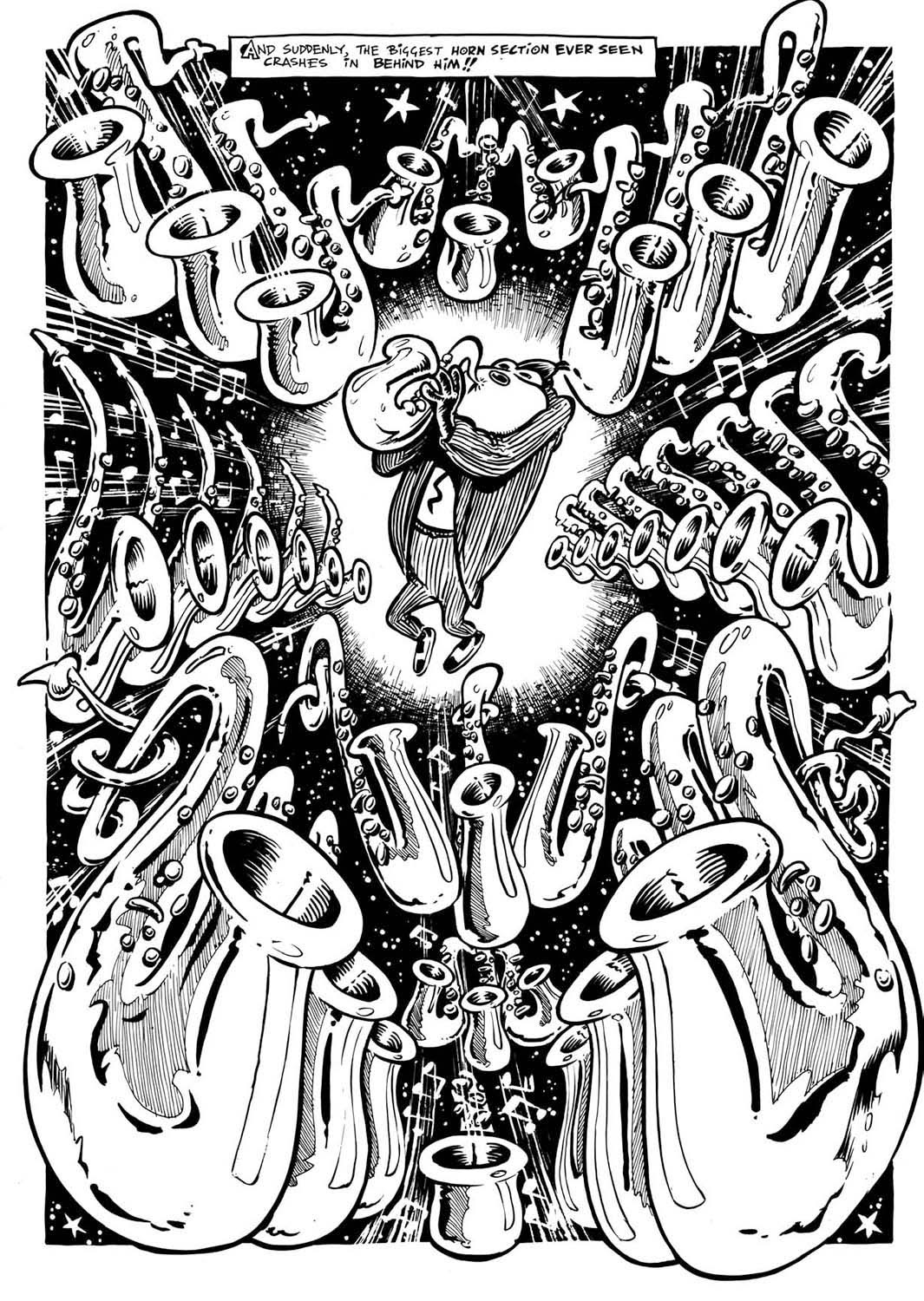 He has published around 30 comic books and albums, mainly with Knockabout Comics, including Lady Chatterley's Lover, The Rime of the Ancient Mariner, Casanova's Last Stand and Dante's Inferno. His latest books are Calculus Cat, a collection of stories about The Cat That Hates Television, Hot Jazz, a collection of jazz-flavoured comics featuring Max Zillion and his saxophone Alto Ego, and Bloke's Progress, a graphic novel based on the unlikely subject of Victorian art critic and philosopher John Ruskin.