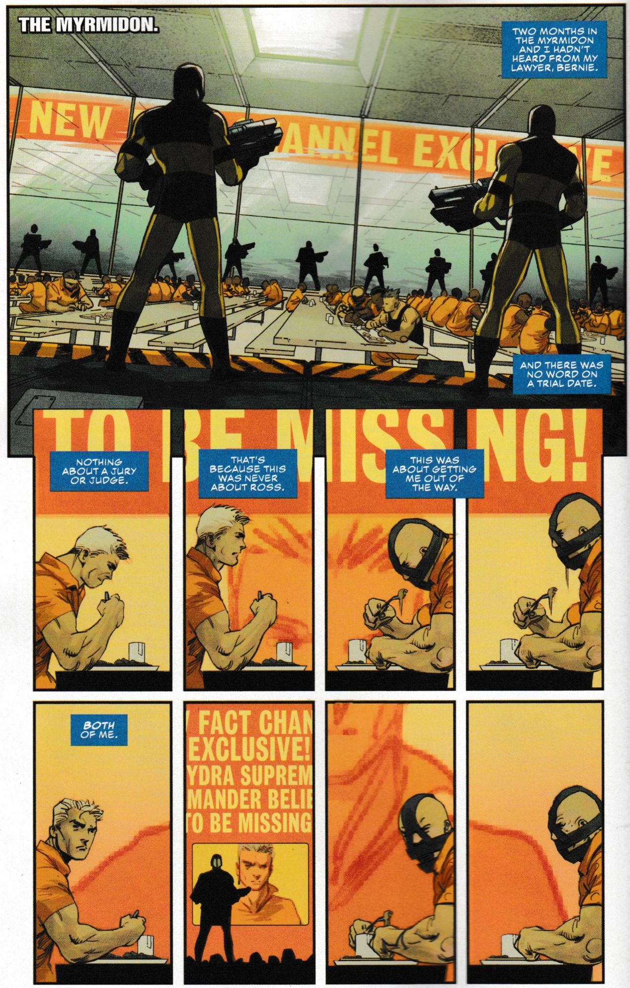 While the Captain America who was brought up by non-fascists has been arrested for the murder of General Thadeus Ross. Despite being innocent. And is currently on remand at the Myrmidon prison.
