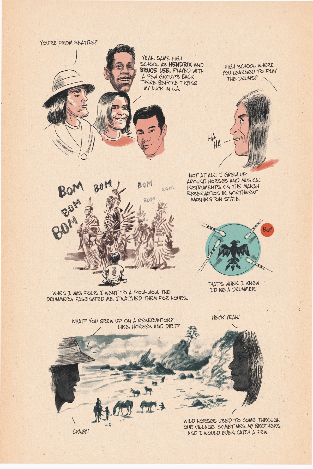 - An interior page from Redbone: The True Story of a Native American Rock Band. Image Credit: IDW Publishing