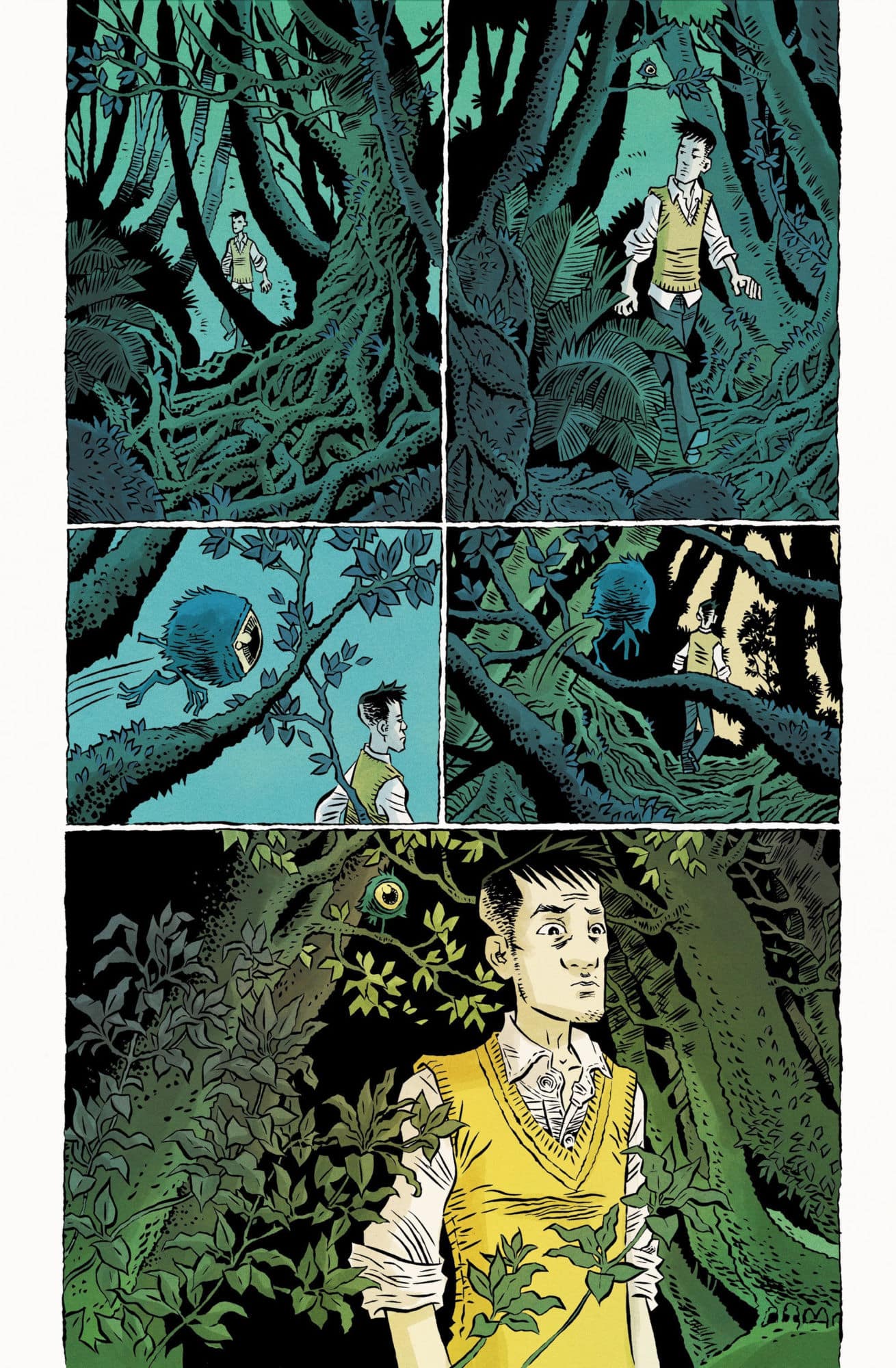 Looking to capture the sound of walking in the woods with color, I jumped at the chance to collaborate with Bobby and Simon on this surreal story.