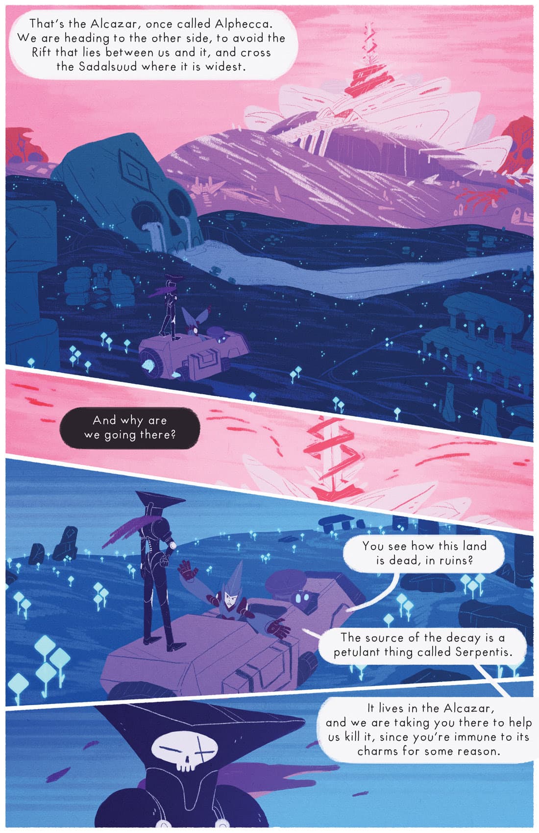Ophiuchus is a strange, personal project—it was based on a dream I had about trying to return home to a dead world, and confronting the ghost that was left of it. We really went into it hoping to eventually turn it into a book one way or another, but we never quite expected the reception we got, and we almost lost our minds when Image decided to print it. We always felt the comic would be best in print, and that really went into every aspect of making it, so we're extremely excited for it to reach a new audience in its intended format. The comic holds a lot of our love, so if you're interested in loss, revenge, skeletons and robots, this is a comic for you.