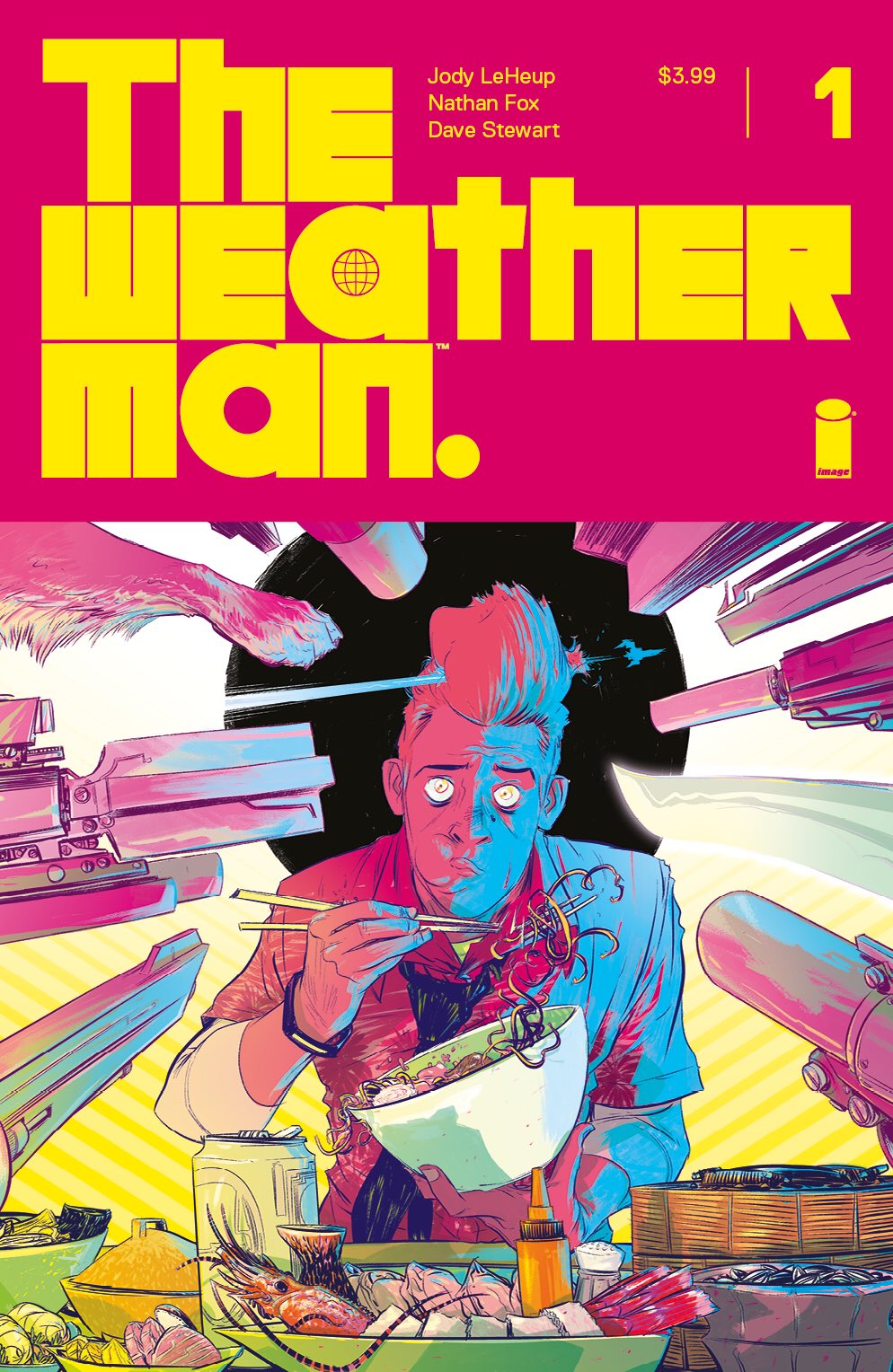 Writer Jody LeHeup (SHIRTLESS BEAR-FIGHTER), Eisner Award-nominated artist Nathan Fox (DMZ, HAUNT, Dark Reign: Zodiac), and Eisner Award-winning colorist Dave Stewart (Hellboy, RUMBLE) merge to form an unstoppable sci-fi tour de force with THE WEATHERMAN!