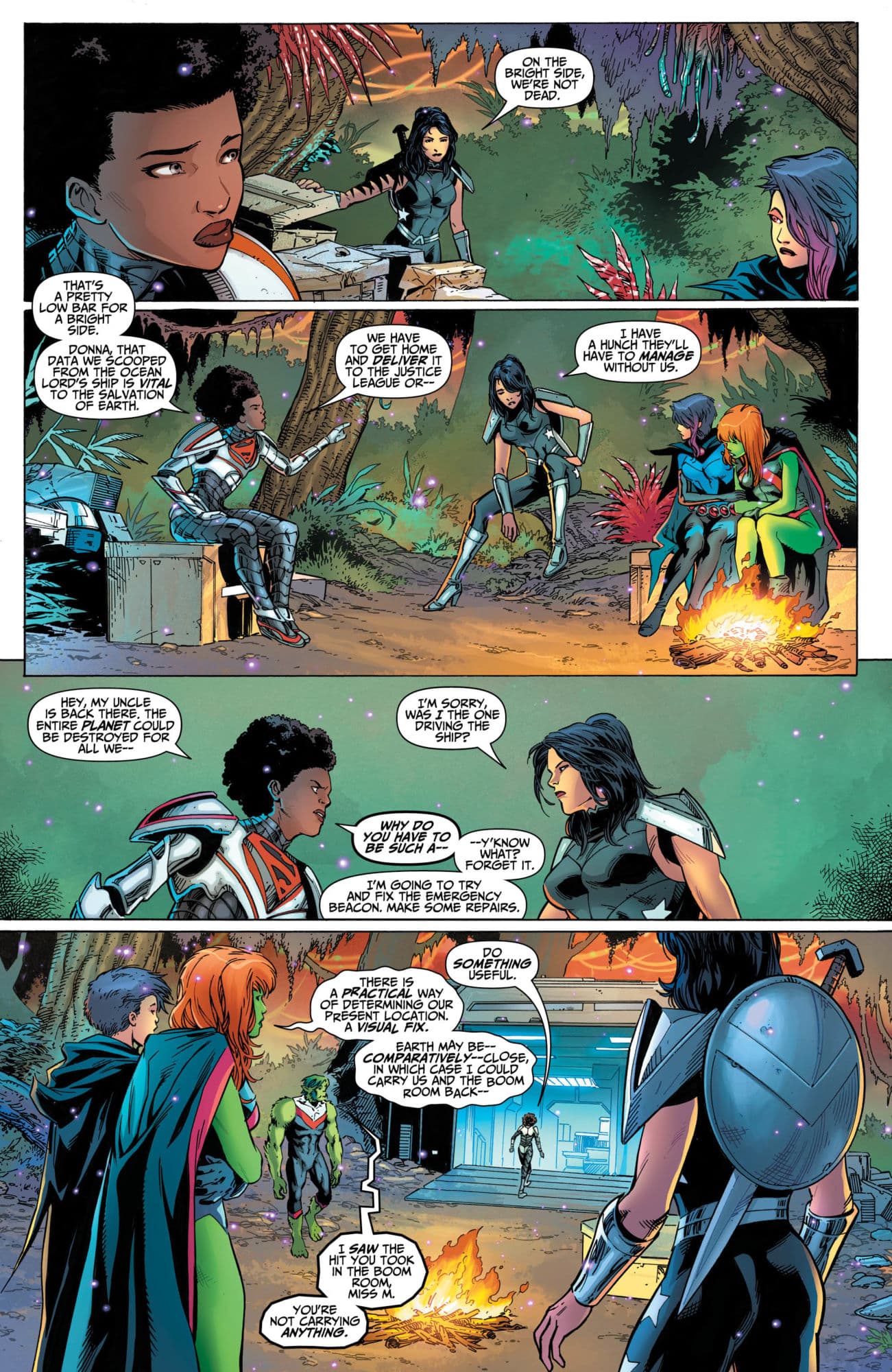 No, it's not one of those Snickers ads that looks enough like the DC house art style that you accidentally get halfway through it before realizing it's not part of the book you're reading. In tomorrow's Titans #9, the team finds themselves marooned on a planet where there's no life-forms to kill and eat, and all the plants and water are toxic. Now they must escape before they starve to death!