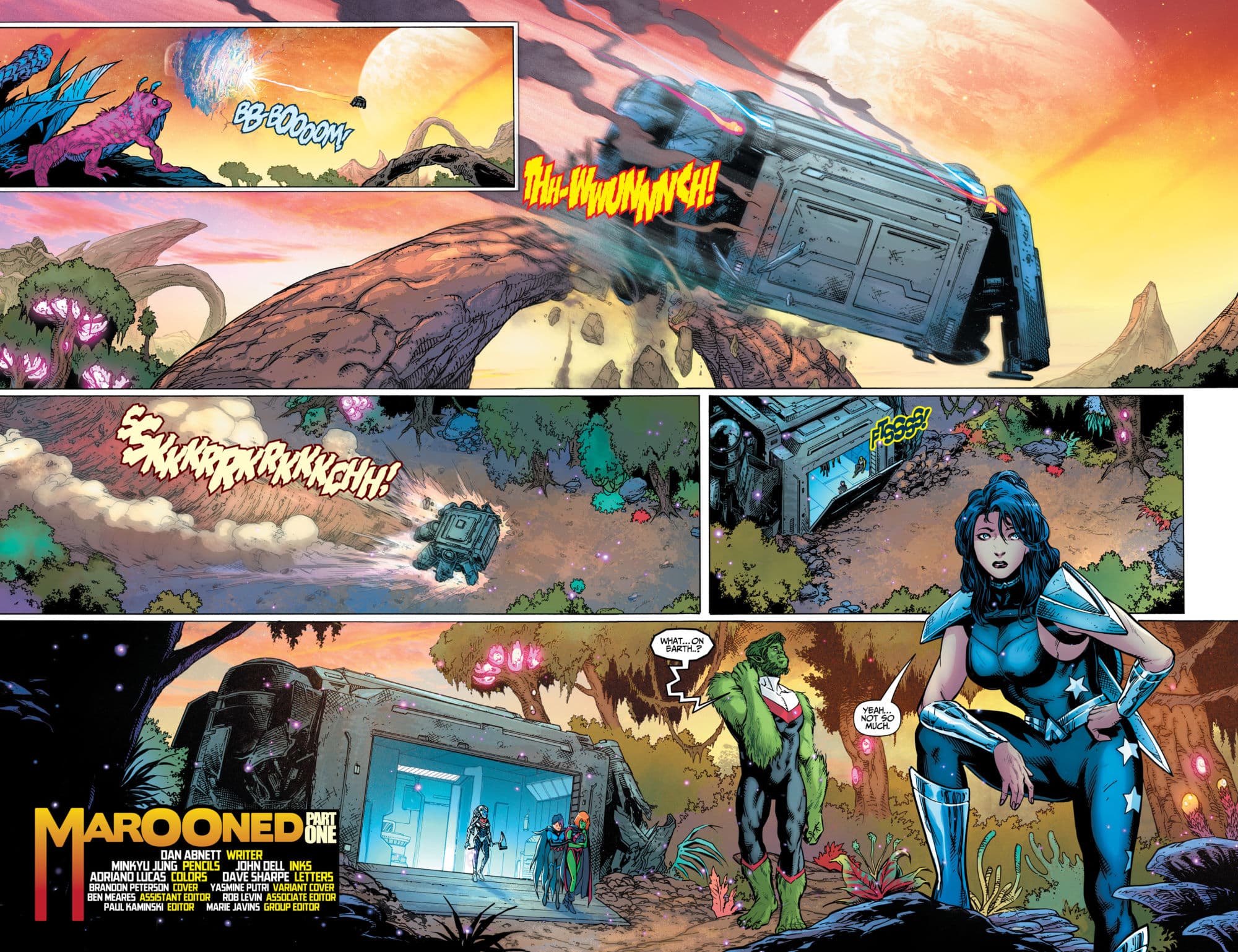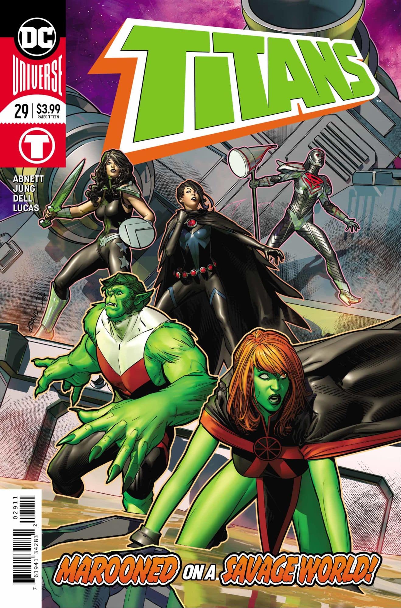 "MAROONED" part one! After their battle with Storrm above the Drowned Earth, the Titans find themselves lost…in space! Stranded on an alien planet-far away from their Earthbound responsibilities, with no means of getting home-they're forced to fight against an enemy that has been lurking in the shadows since the inception of this version of the Titans: their own inner demons. And maybe some outer demons as well!