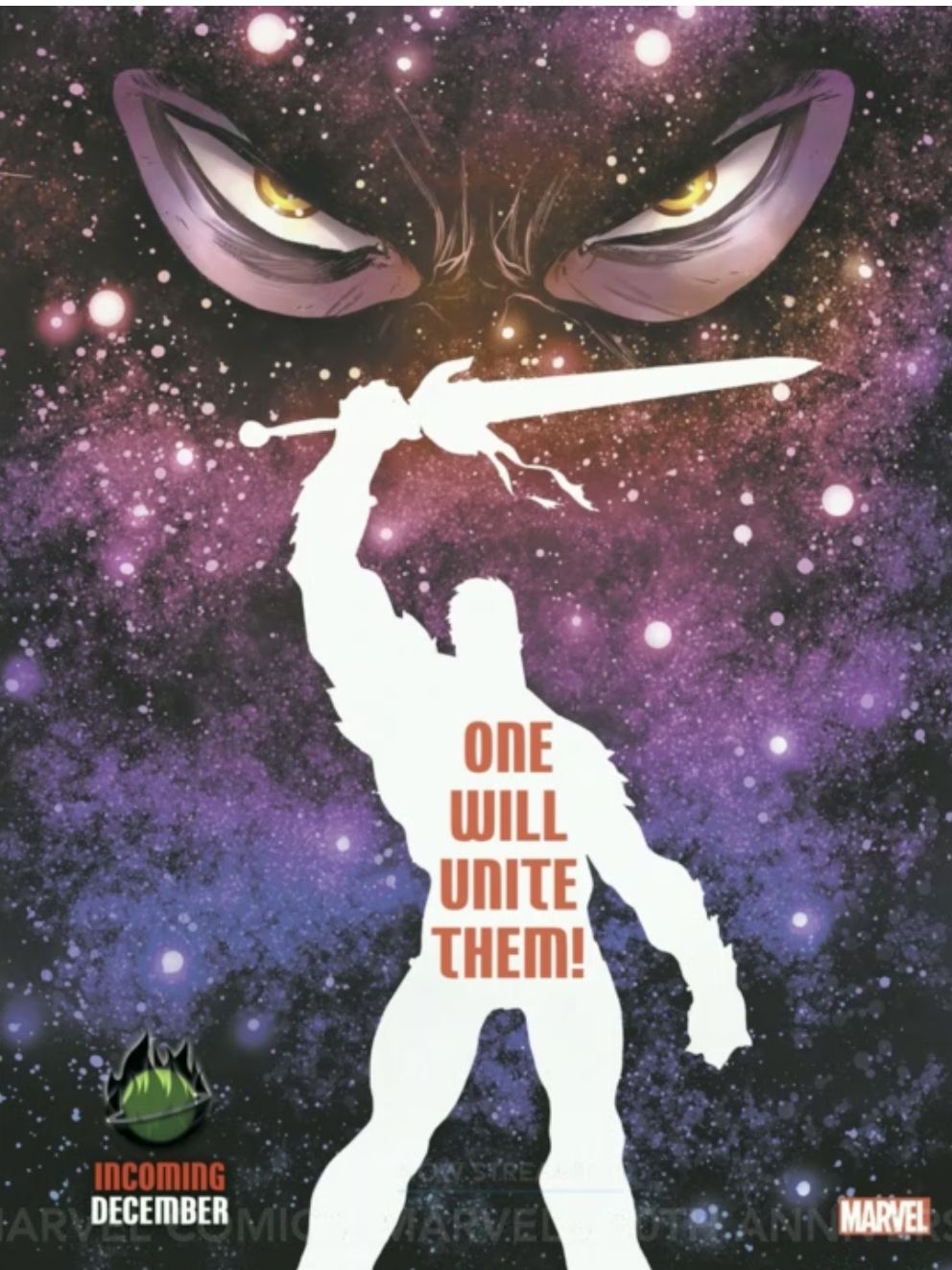 Any theories? Could it be Hulking uniting the Skrull and the Kree? Has Marvel got the rights to He-Man And The Masters Of The Universe comic books now? Sound out…