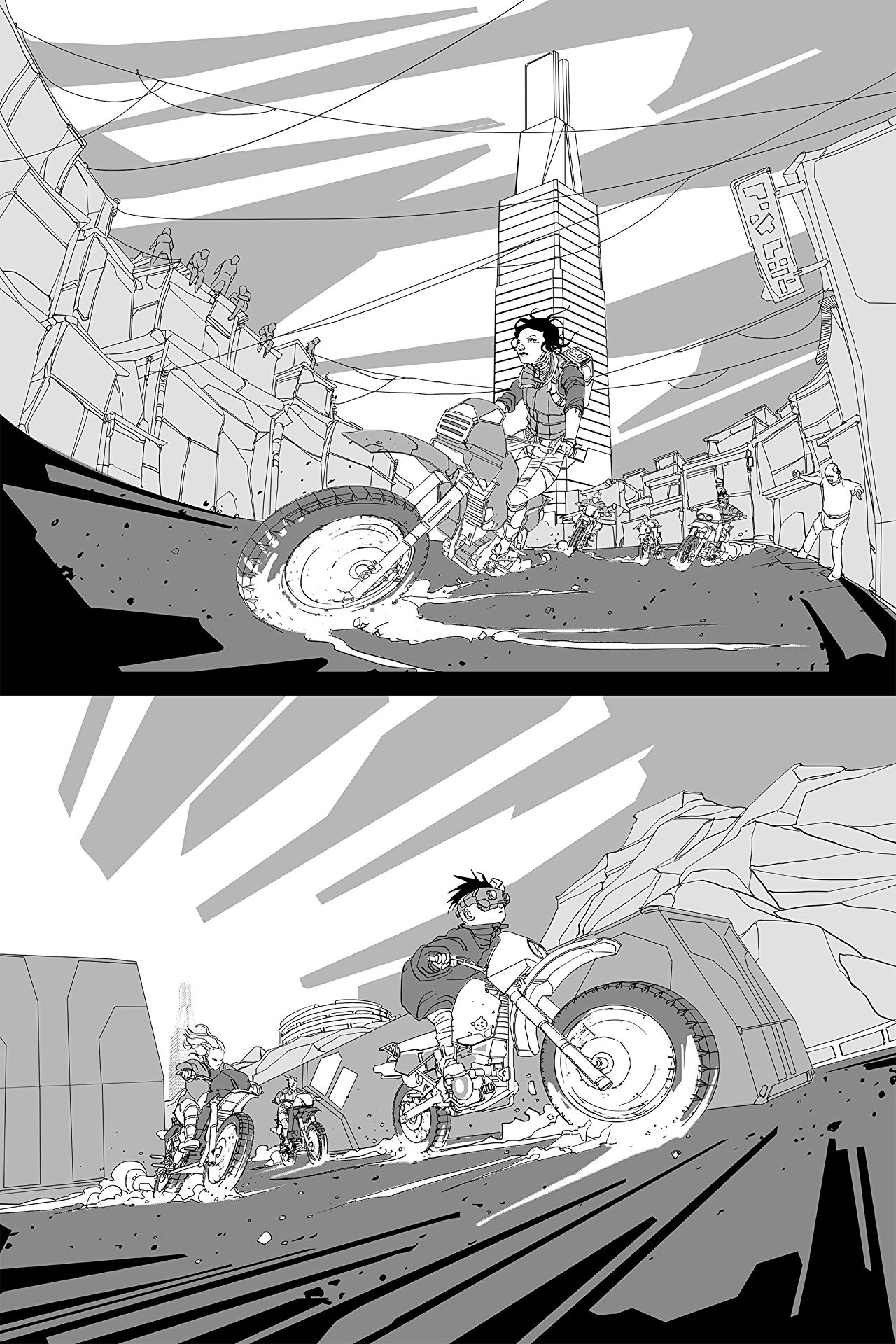 Oasis is a dystopian cyberpunk drama by Alex Wills and Breno Girafa. It takes place in a futuristic Los Angeles wherein a group of orphans are brought together by a woman named Miranda. Miranda wants to bring down the rich and powerful of the world, and she recruits these orphans to help her bring it all down. Family bonding and cyber-anarchism are on the menu with Oasis.