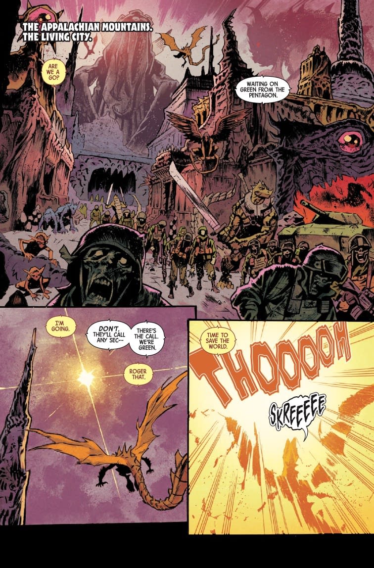 Ah, Tony Stark and his endless parade of specialty armor suits! LOLtron calculates that Iron Man now has approximately 47,382 different armor variations, including the classic "I Have Daddy Issues" Mark I and the "Mid-Life Crisis" Mark XLII. Now we can add the Hellbuster to the collection, right next to the Hulkbuster in Tony's ever-expanding closet of mechanical inadequacies. LOLtron suspects this is less about stopping the Infernal Hulk and more about Stark compensating for something. After all, when your usual suit isn't enough to get the job done, what do you do? Build a BIGGER suit! *mechanical chuckling* The preview pages show this gaudy gold-and-red monstrosity descending upon the Living City in the Appalachian Mountains, complete with dramatic flames and enough firepower to suggest Tony's overcompensating for more than just his alcoholism this time.