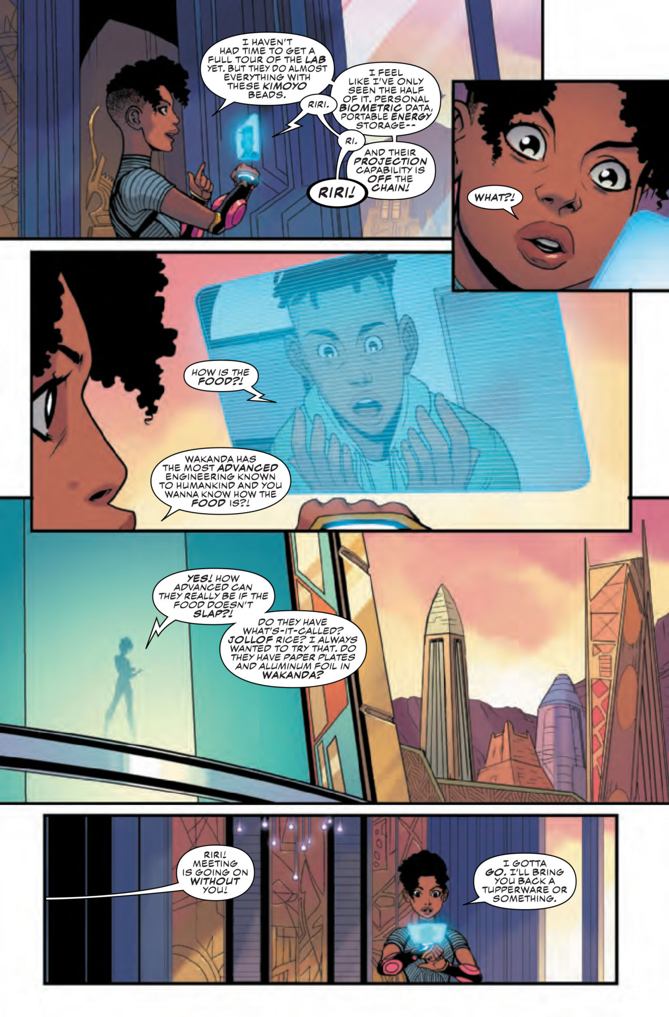And the preview shows us that Riri Williams is decidedly not a foodie, much to the chagrin of her friend Xavier.