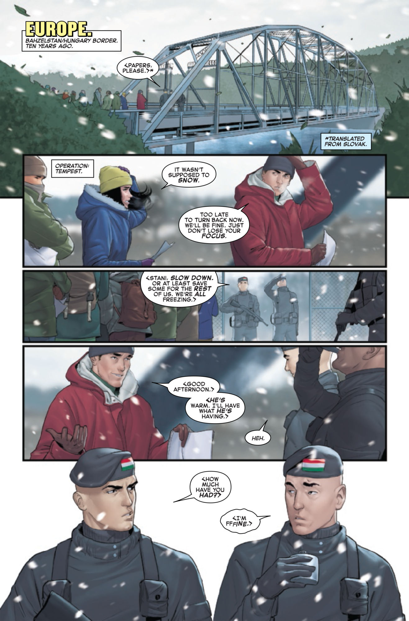 The preview is set 10 years ago, as Invisible Woman is attempting to smuggle someone into Bahzelstan.