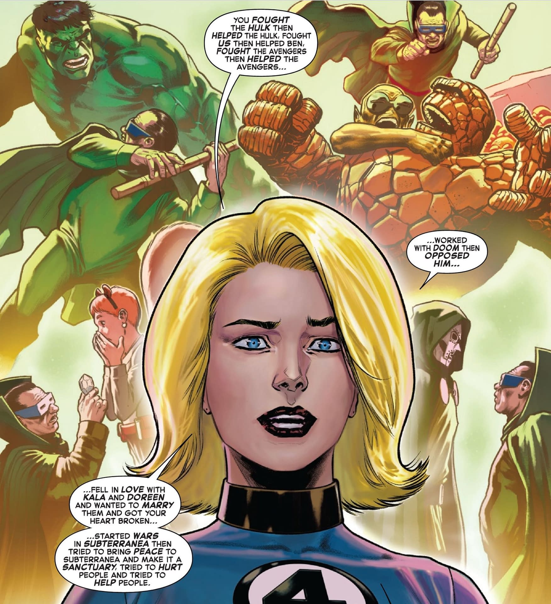 - Sue Storm uses her ability with the Mole Man, raising questions about the limits of her powers.