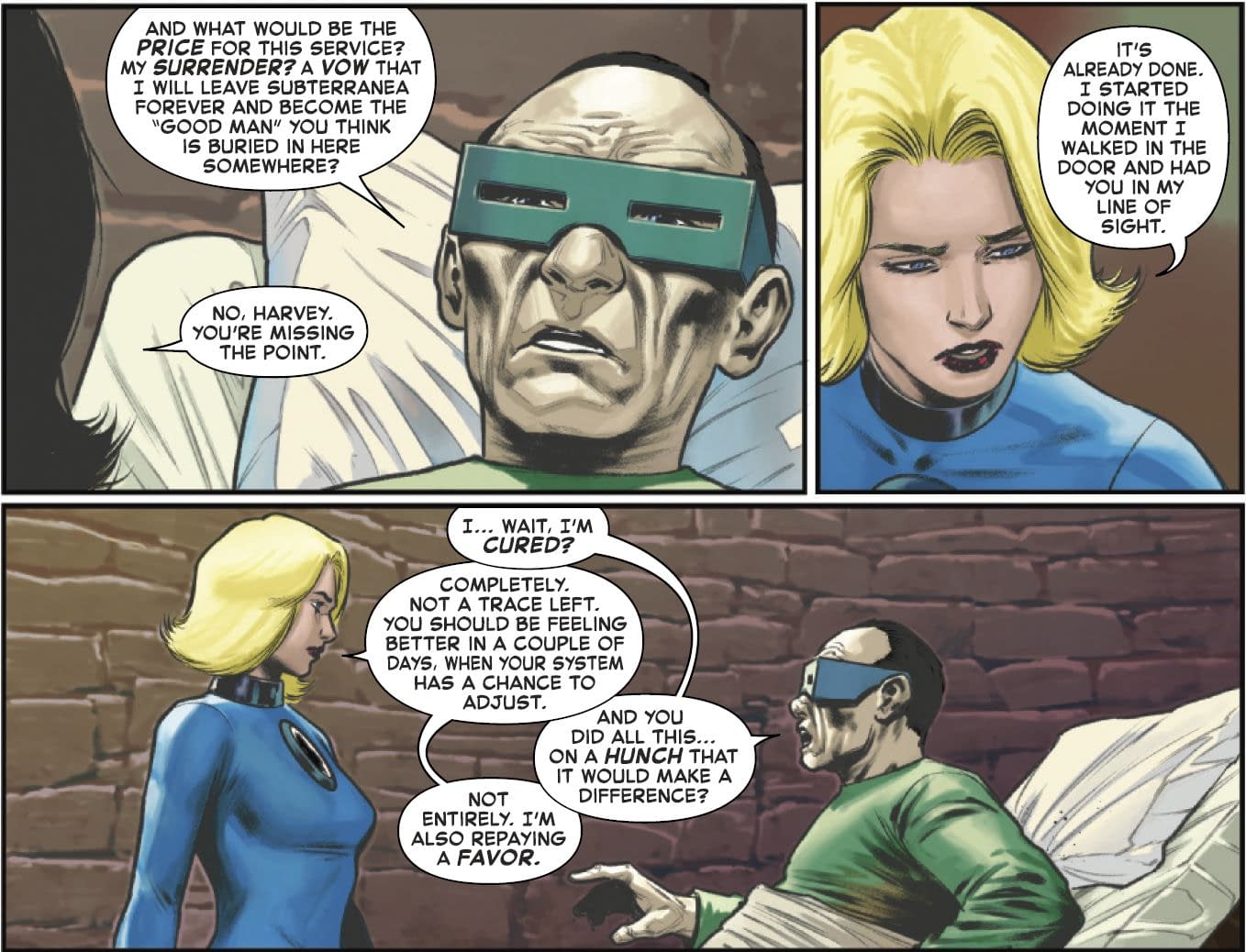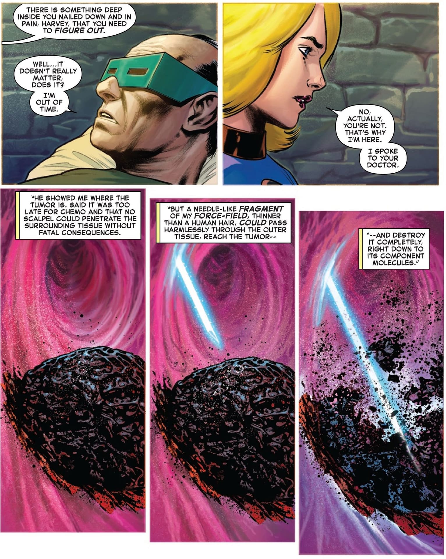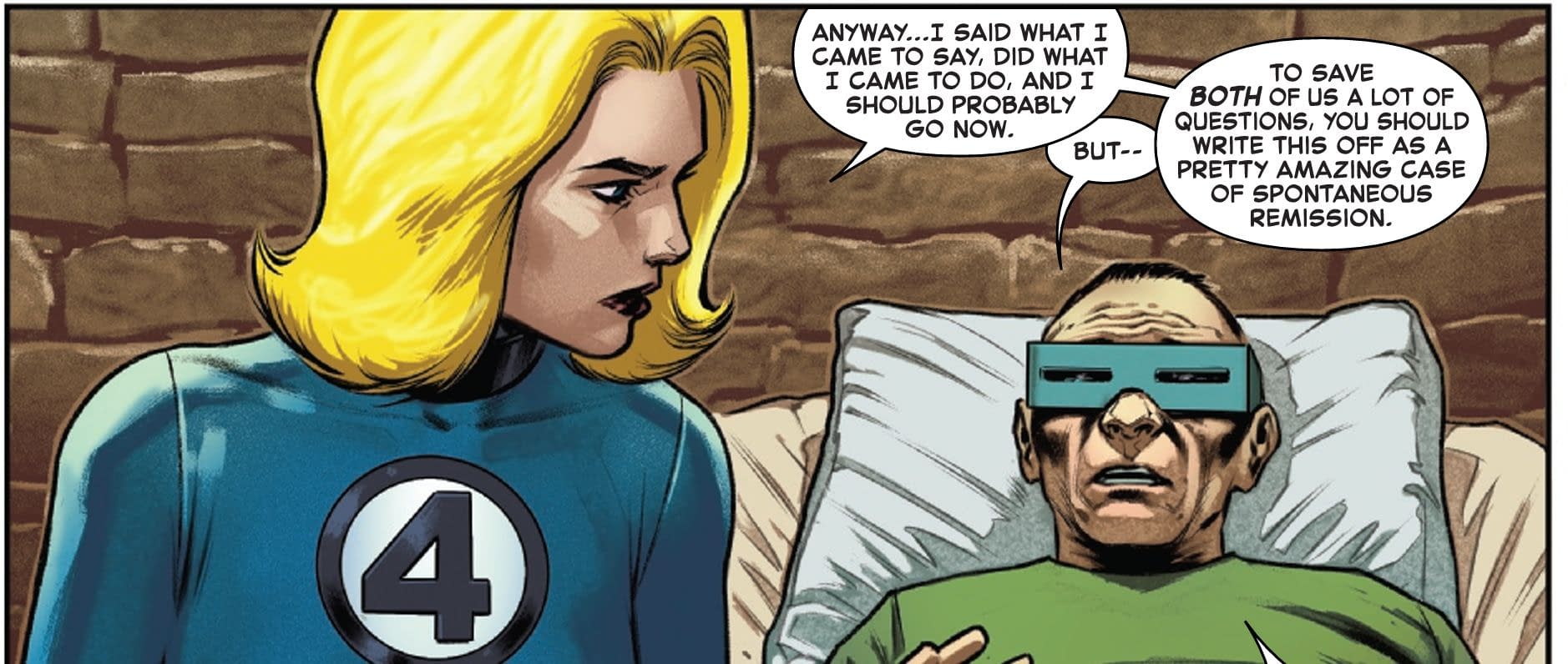 Well, add to that list, Susan Storm, the Invisible Woman. She can cure cancer. As long as you are a supervillain who has occasionally been a sympathetic character. But that's all, no one else.