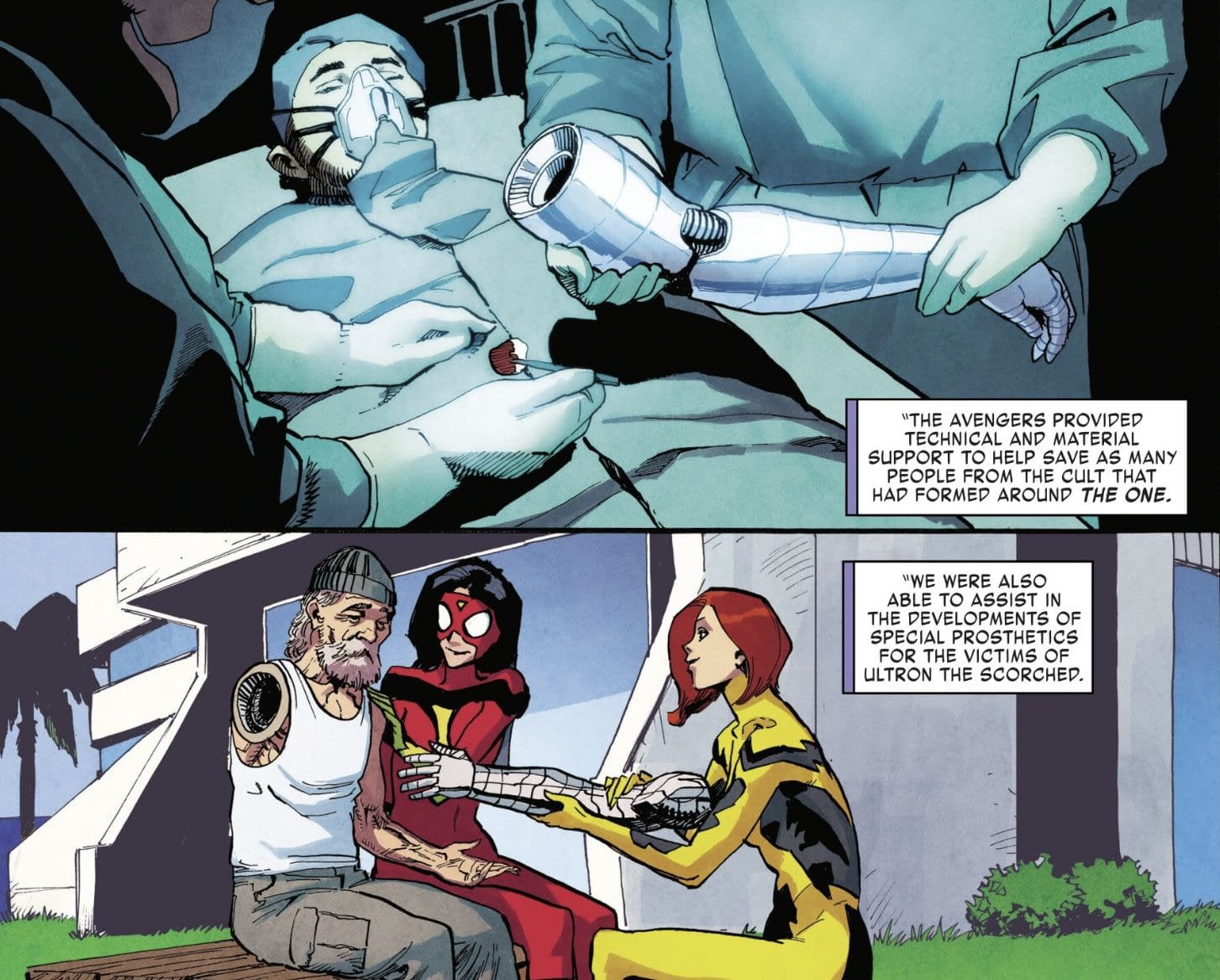 As well as the whole Krakoa resurrection situation itself. And in today's West Coast Avengers #10, you can get new prosthetic limbs for free, as long as it is one supervillain that the Avengers who were fighting, was responsible.