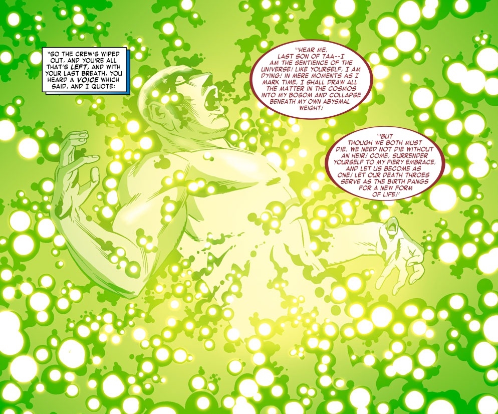 As Bruce Banner, the last survivor of the universe is about to become the first lifeform of the next one. The Sentience Of The Cosmos now rather than the Sentience Of The Universe. Promotion or demotion?