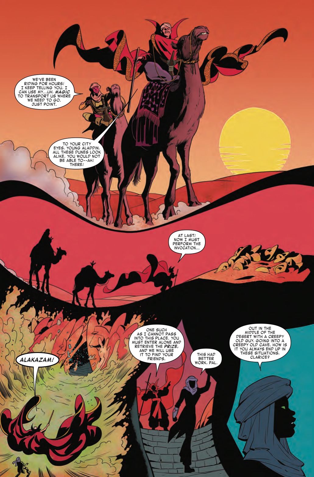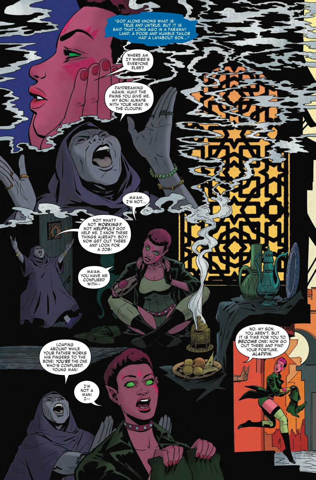 Blink is used to interdimensional time travelling from her years of experience with the Exiles, but things appear to be getting a little bit Quantum Leapy in Exiles #9. At the end of the previous issue, Blink found herself teleported to another universe and inside the body of Aladdin (talk about your parent company synergy!), and recognizable to others as such. The preview for issue #9 confirms that Blink hasn't just travelled in time and space, but she's apparently actually become another character, at least to those around her.