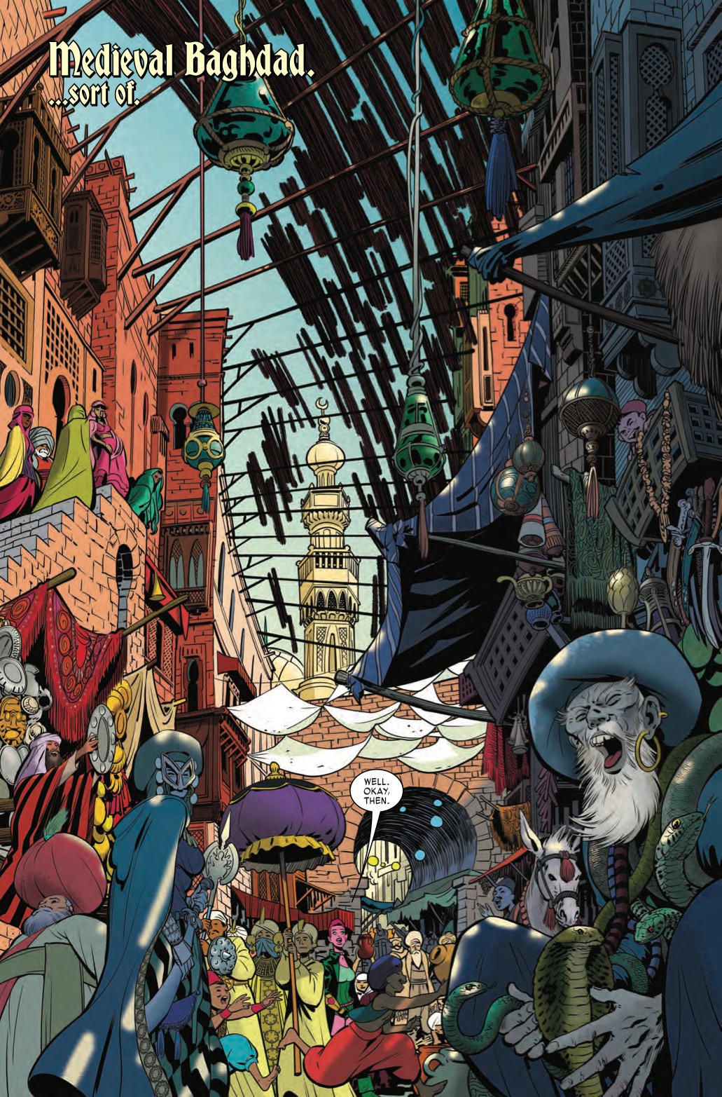 Javier Rodriguez returns on art duties with the start of a brand-new arc! On the run from rogue Watchers, the Exiles find themselves scattered in a dusty Arabian town – and with a bad case of mistaken identity! Who is the ne'er-do-well son of a tailor everyone calls "Aladdin"? What are the 40 thieves after? And most importantly…what classic Marvel villain plays the role of despotic Caliph? Saladin Ahmed brings One Thousand and One Nights to life in the pages of Marvel Comics!