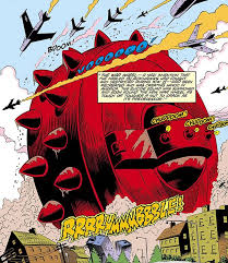 A gigantic wheel, spiked and heavily armored so that not even the largest artillery shell could penetrate it. Buildings and vehicles were crushed as it rolled along. The Blackhawks used every weapon they could think of against the War Wheel, from aerial bombs to Chop-Chop crashing his plane into it; nothing worked. Only electrocuting the pilots inside the wheel could stop it.