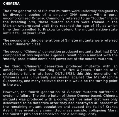 In House Of X, as part of the ninth timeline, we learnt about Mister Sinister's clones, individuals grown and trained on Mars – or Arakko as it is now to be referred to. And from these, he built Chimera.