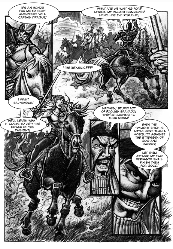 The course of history is being threatened by the invasion of the powerful Baal-Sagur, a.k.a. The Necromancer, who intends to chase the Spaniards and other Westerners from the New World and seize control of the American continent for himself. But the villainous mastermind did not plan for the intervention of CAPTAIN DRAGUT and his lovely companion, the vampire SCARLET LIPS…