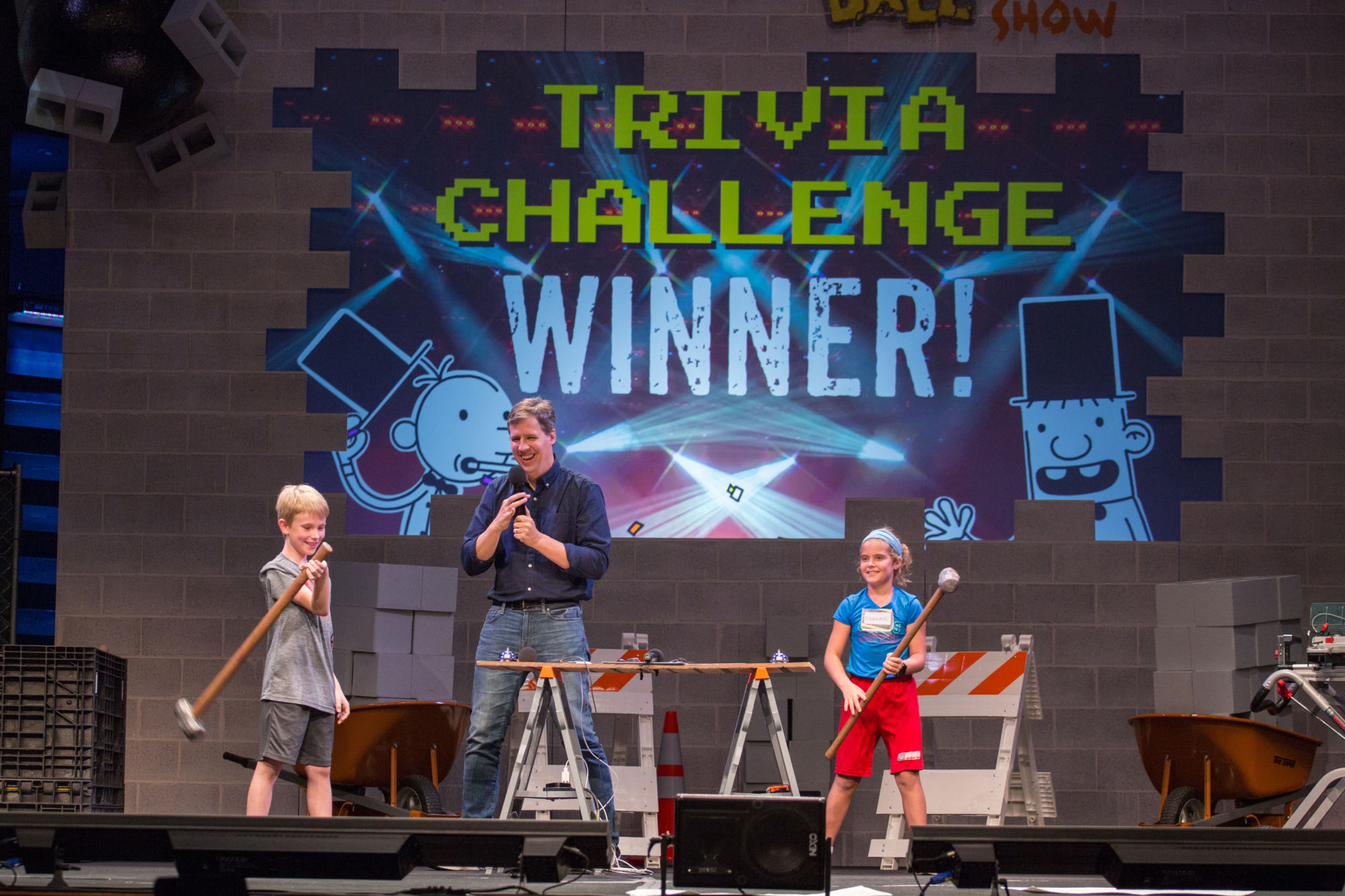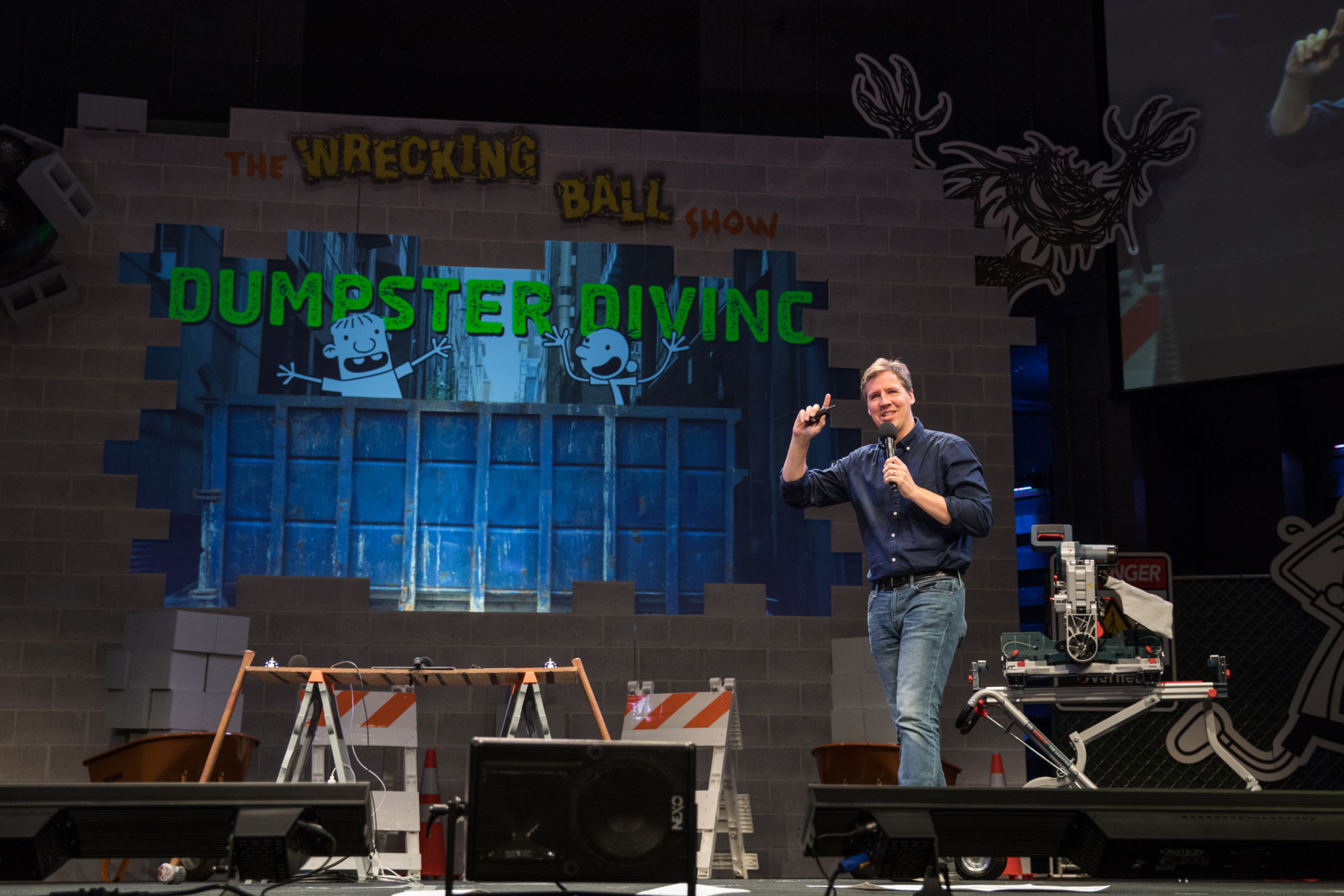 Yesterday saw the publication of the latest Diary Of A Wimpy Kid volume, by Jeff Kinney. And to launch Diary of a Wimpy Kid #14: Wrecking Ball, Jeff is headed to 10 cities over two weeks across the American Mid West, performing The Wrecking Ball Show for thousands of fans from Houston to Minneapolis. The one-hour show hosted by Jeff is themed around the new boo, in which the Heffley family embark on a home remodel with disastrous results. Expect lots of hard hats, caution tape, and trademark Wimpy Kid humour…