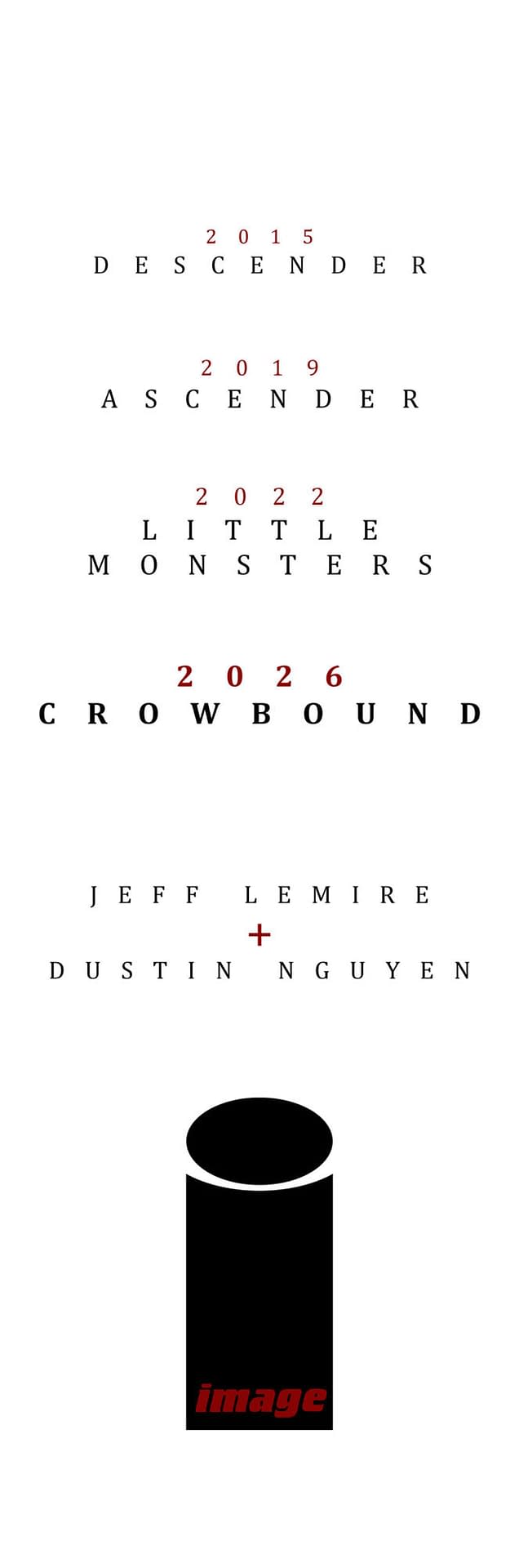 Jeff Lemire and Dustin Nguyen, creators of Descender, Ascender and Little Monsters, will reteam with an all-new ongoing fantasy series in the upcoming Crowbound. This dark fantasy is set to launch from Image Comics in March 2026.