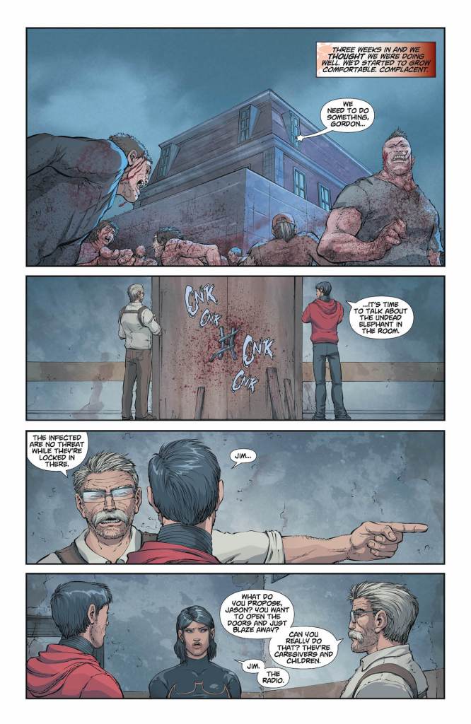 As we see in this preview, Jim Gordan and Jason Todd are watching over a room where infected people are quarantined.