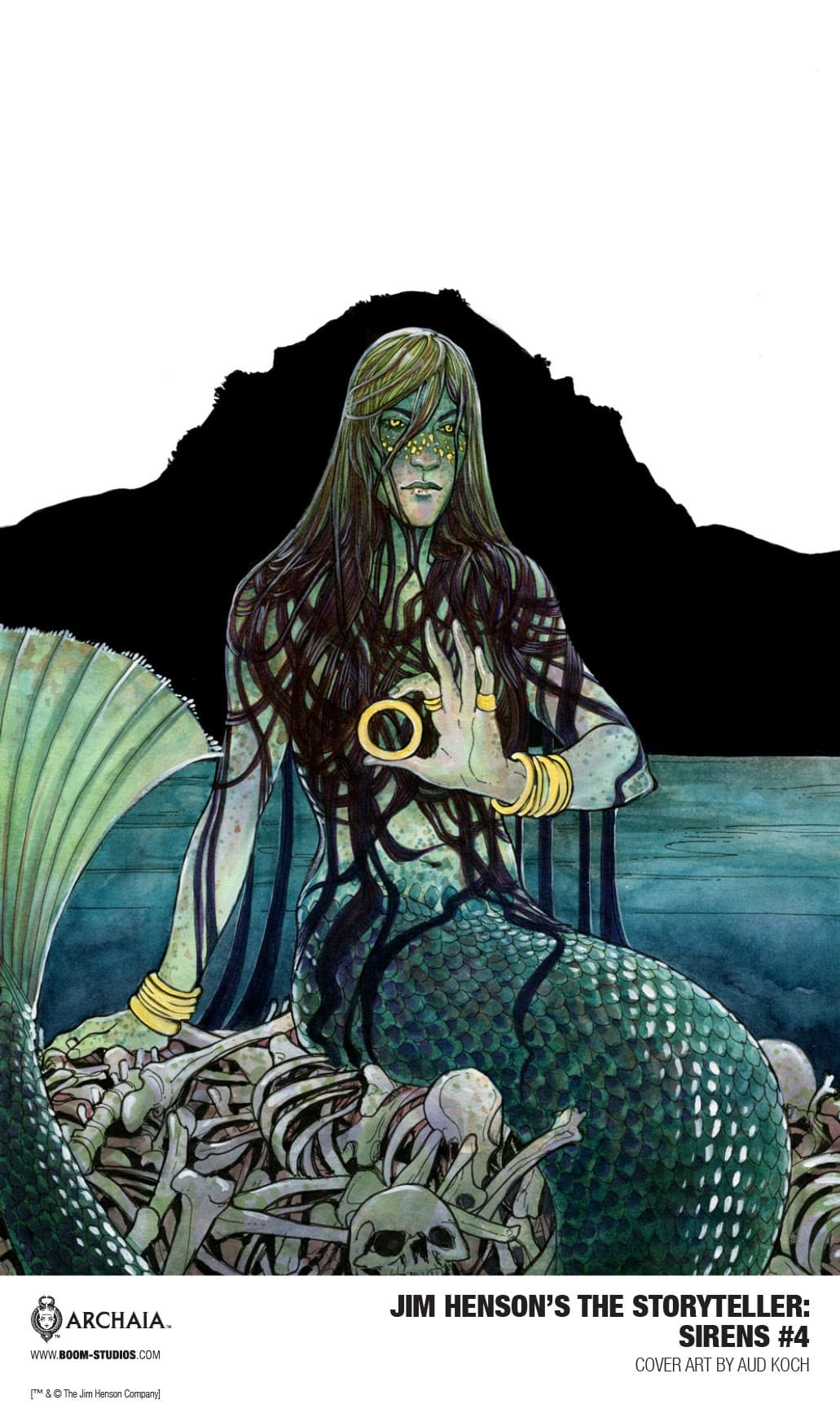 JIM HENSON'S THE STORYTELLER: SIRENS features main connecting covers by Cory Godbey (Jim Henson's Labyrinth: Tales), along with variant covers by artists Jakub Rebelka (Judas), Chan Chau (Elements: Fire), Sarah Webb (Jim Henson's Labyrinth: Under the Spell), and Aud Koch (The Wicked + The Divine).