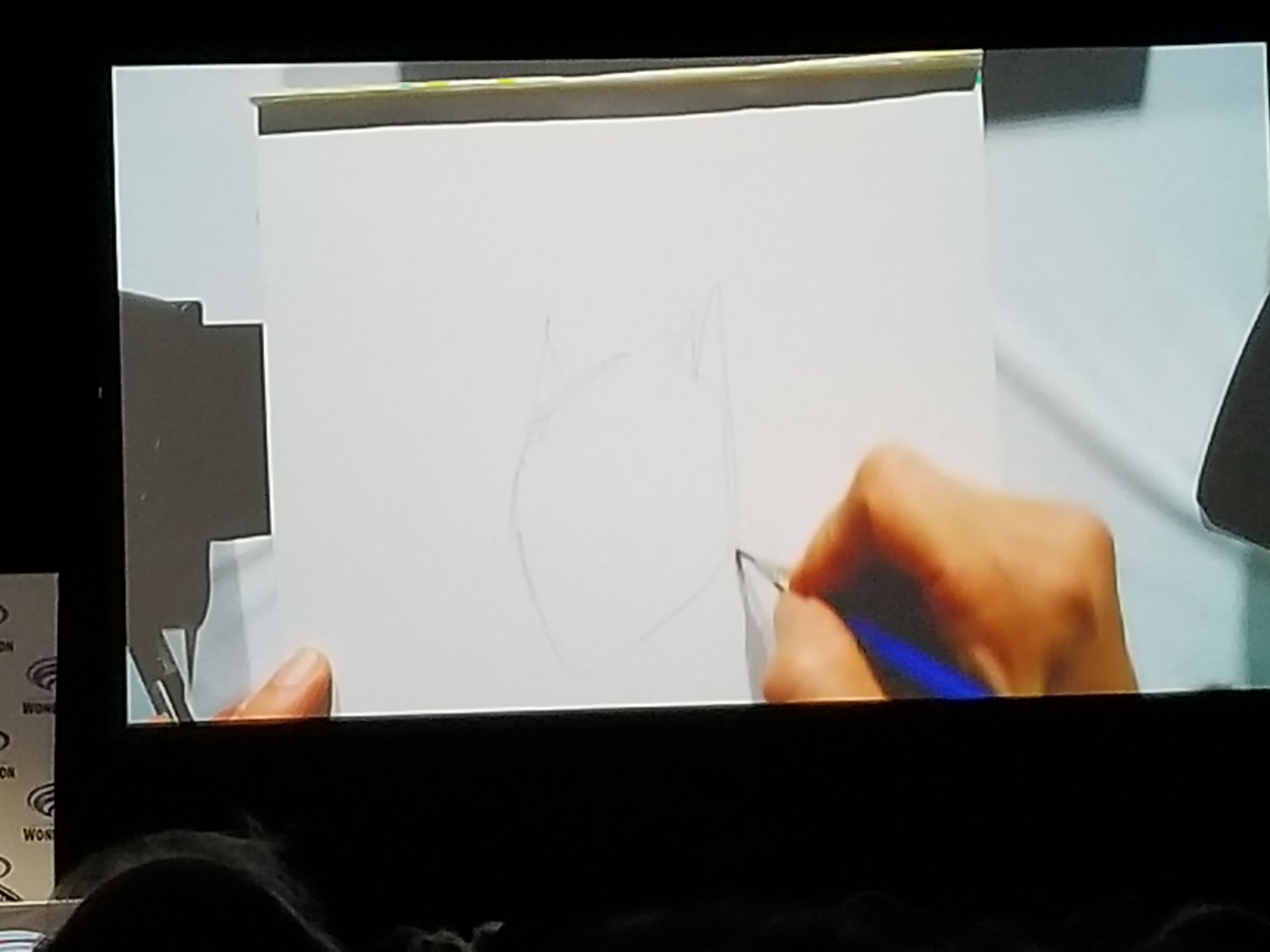 Jim starts off by sitting down and welcoming us to WonderCon 2018, which is followed by a huge round of applause. Jim continues to explain the usual process of his panels — he draws, he talks, and gives away the sketches to some lucky fans.