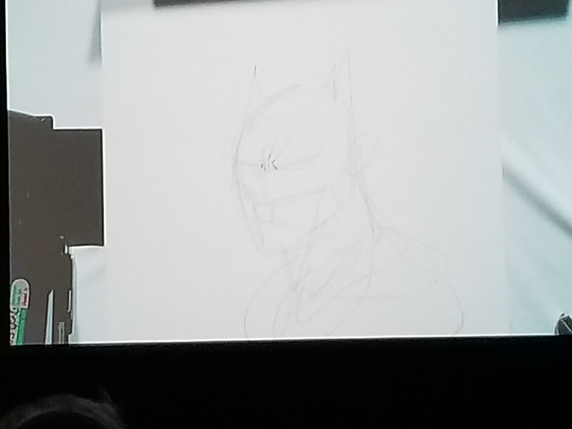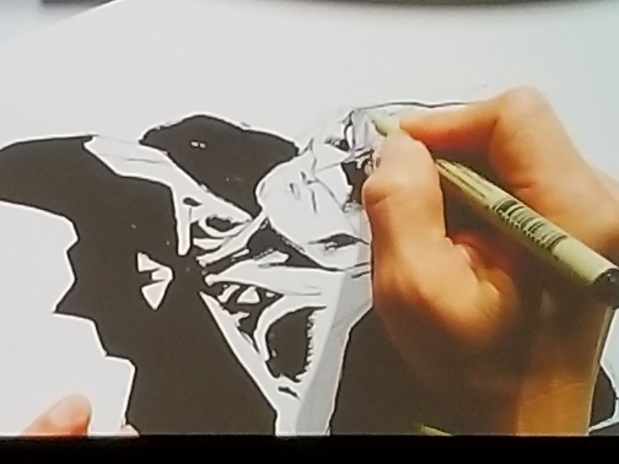Jim invites them to sit and take a shot a telling his story. He also assures them not to be too nervous as he will correct anything too out of place. Jim continues to flesh out his sketch as Fan #1 (no names given) starts by telling the audience that Jim's parents wanted him to be a doctor, but he had other ideas for his future. He asked his parents to give him one year to get into a studio, and if he couldn't, he would go into medicine. An overhead camera picks up the magic as Lee's scribbles and lines slowly come together as a recognizable shape as the fans story unfolds.