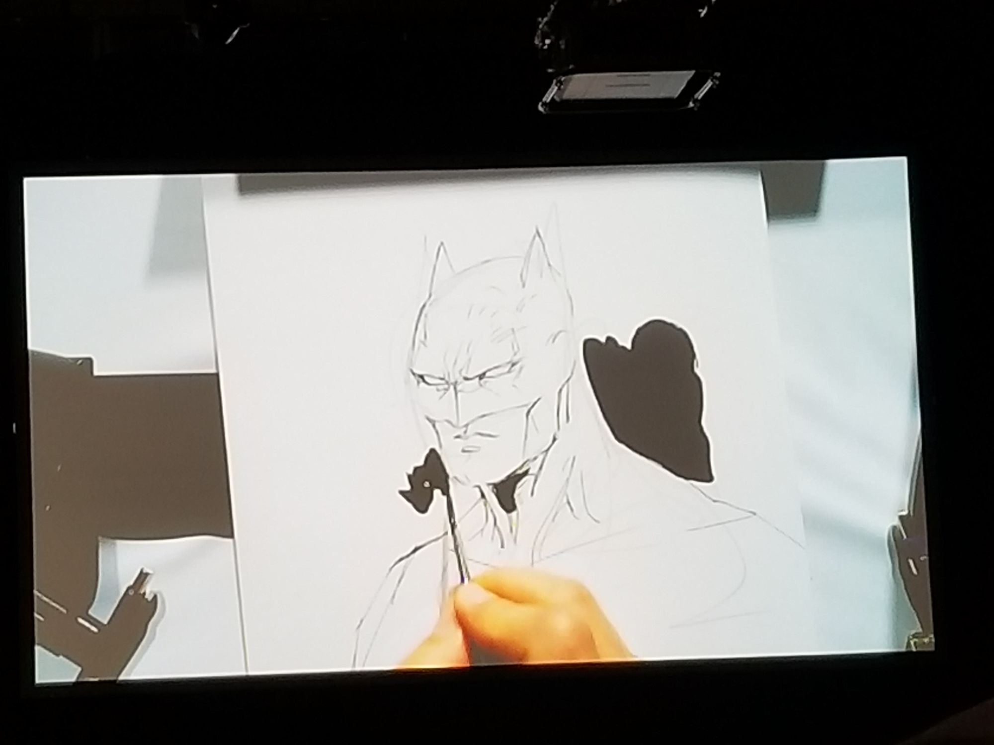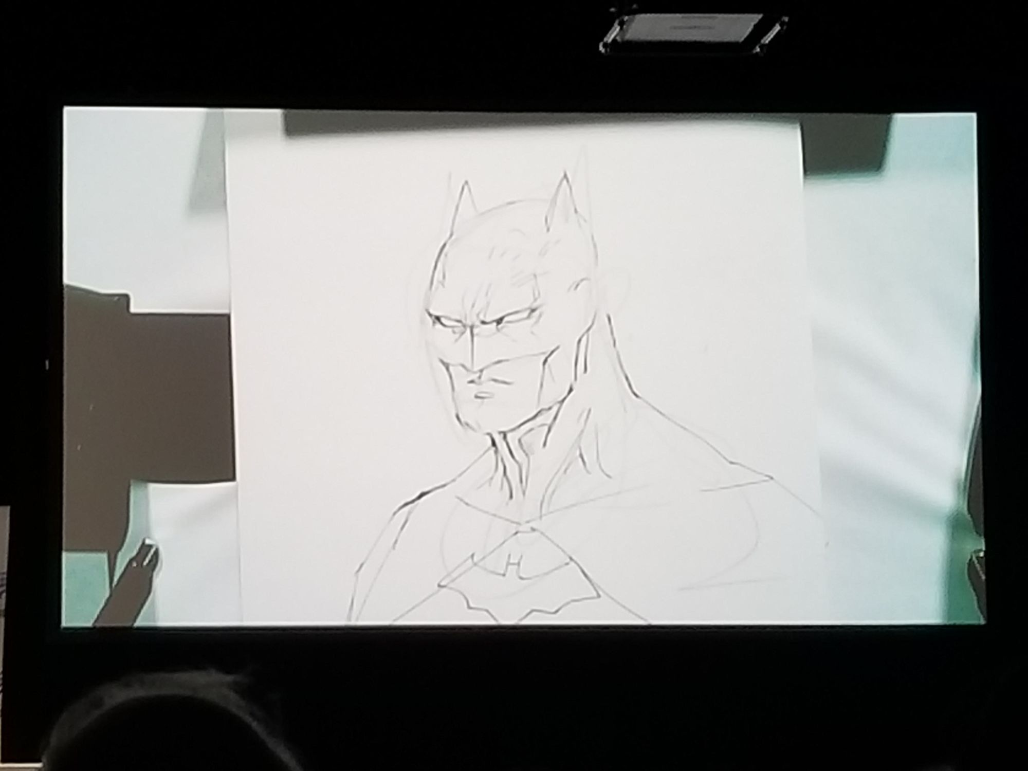 The first fan tell us what a fan of Star Trek Jim is and that when he became a naturalized citizen he used James T. Kirk as inspiration to choose his name. Fun fact: he named his sister Linda Lee, after Supergirl. He quickly runs down some early credits like Alpha Force, Punisher, and Uncanny X-Men. Jim then did a 12-issue run on X-Men, then took off with some of his friends to start a little company called Image. Fan #2 continues that after selling his company Lee moved on to DC, where he notably worked on Batman: Hush. Which brings us to present day where is the co-publisher at DC comics, drew DC Origins, and infamously gave Wonder Woman pants! Jim nods and adds tidbits here and there as he keeps working his magic on the paper.