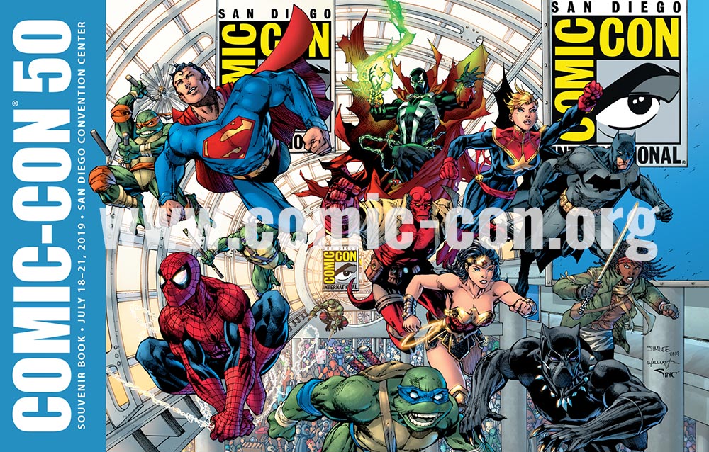 Jim had this to say about working on this year's cover: "The honor was mine getting to do this historic cover for the world's preeminent pop culture event. What an amazing 50 years! Comic Con was the start of it for me and from my very first Con back in 1987, it's been a huge part of my life. I've watched it transform the business and usher in a world I don't think any comic book reader back in 1987 would ever have imagined to come to be. Thank you, Scott and Alex—you two continue to elevate and enhance everything you guys touch and this cover is a testament to the teamwork that we have forged and the sheer talent you bring to every project."