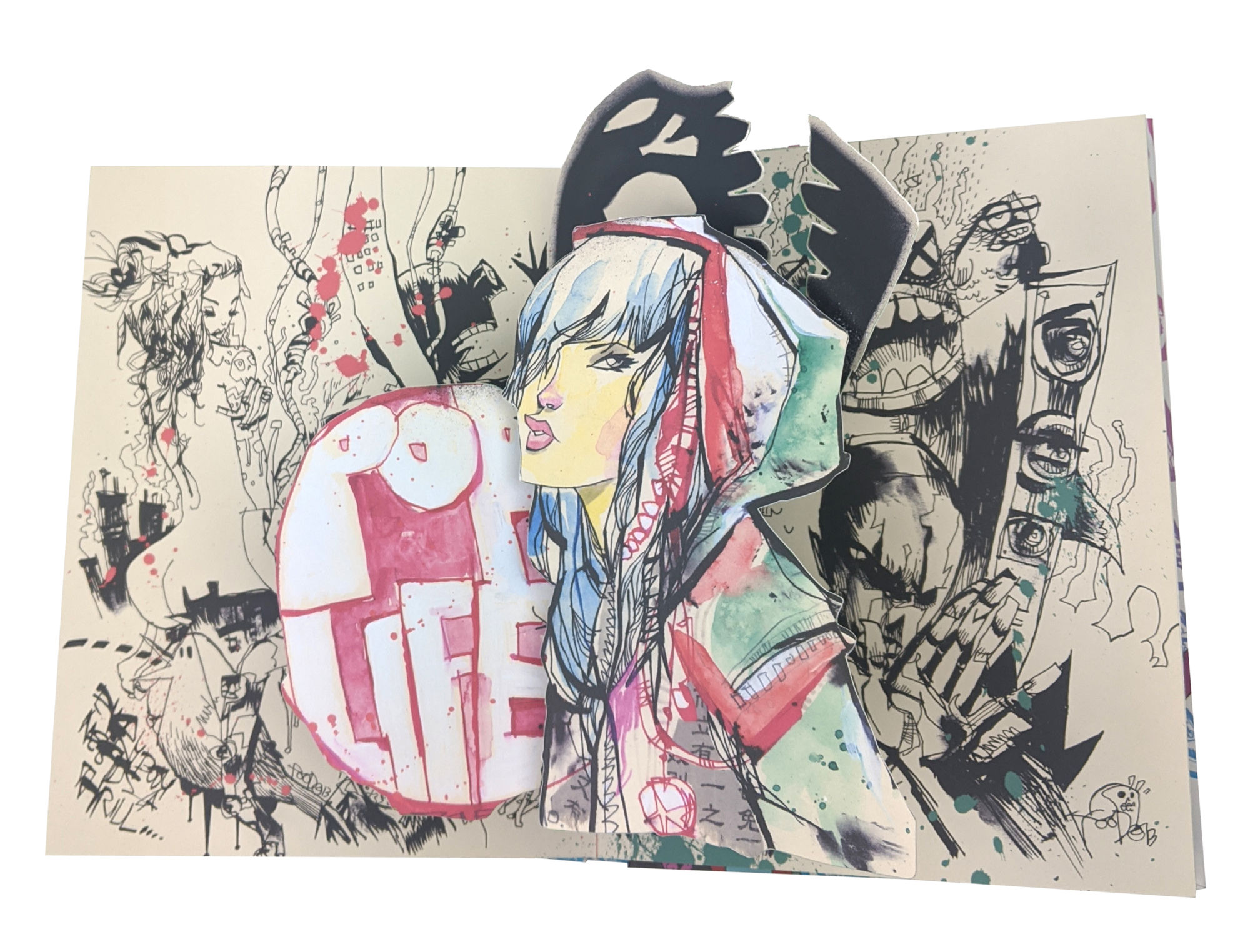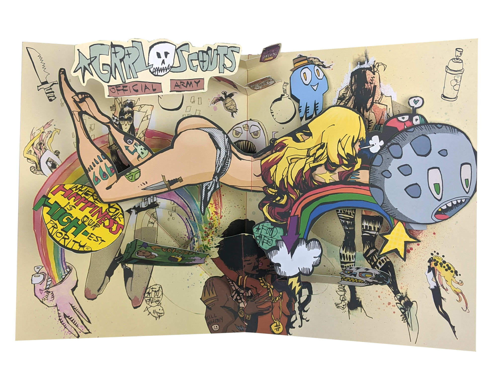 A new release from Poposition Press features indie comic artist Jim Mahfood's unique Visual Funk style in a three dimensional pop up book format. Pop Up Funk takes some of Mahfood's best known work (Grrl Scouts, Everybody Loves Tank Girl) and transforms each piece into a sculptural art piece in this gorgeous art book.