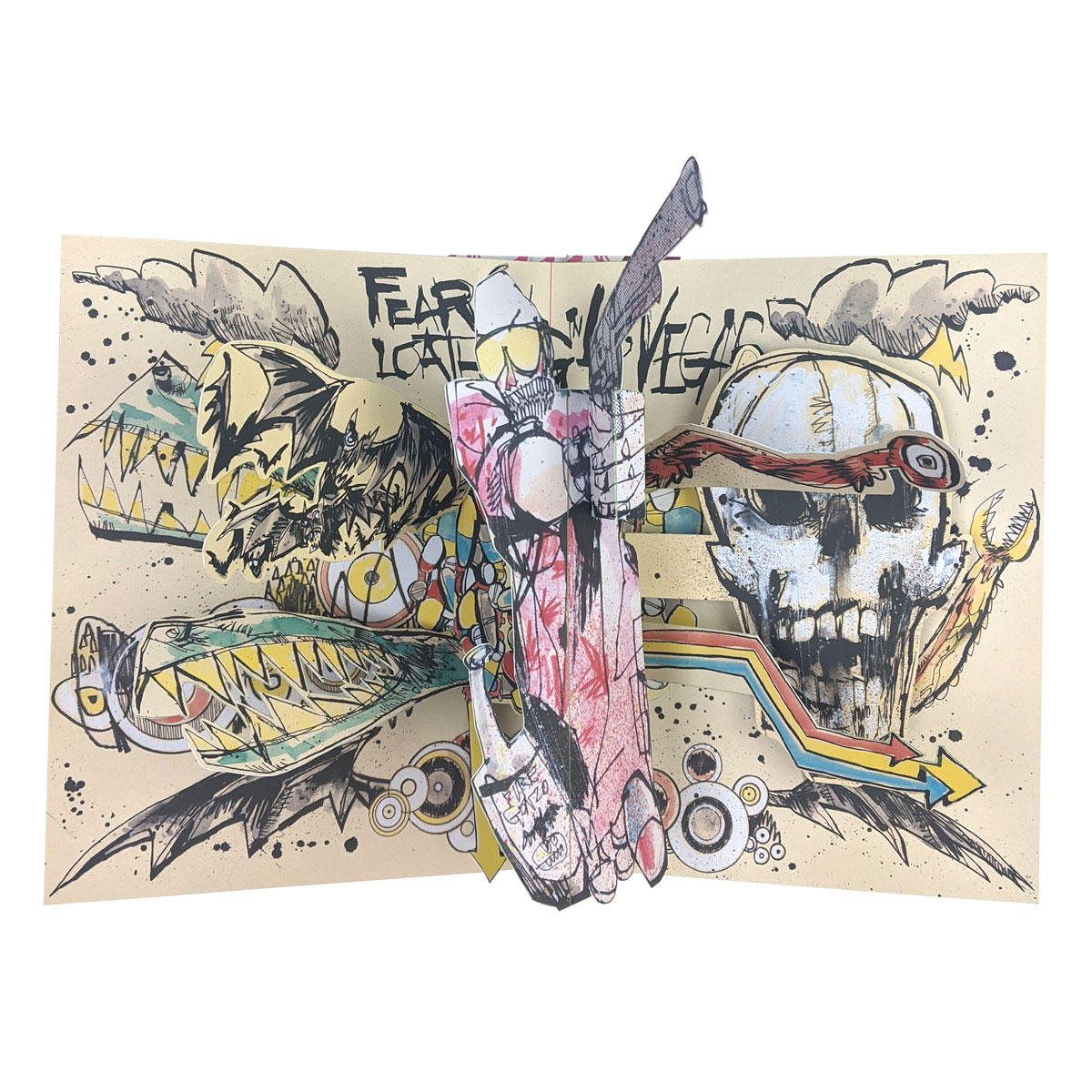 Pop Up Funk is available in two editions, each with six pop up spreads opening flat to 11" x17". There's the Cosmic Queso Edition and the ultra deluxe Neon Jive Edition, which includes exclusive cover art highlighted with chromatic foil, and comes housed in a laser etched neon red acrylic slipcase.