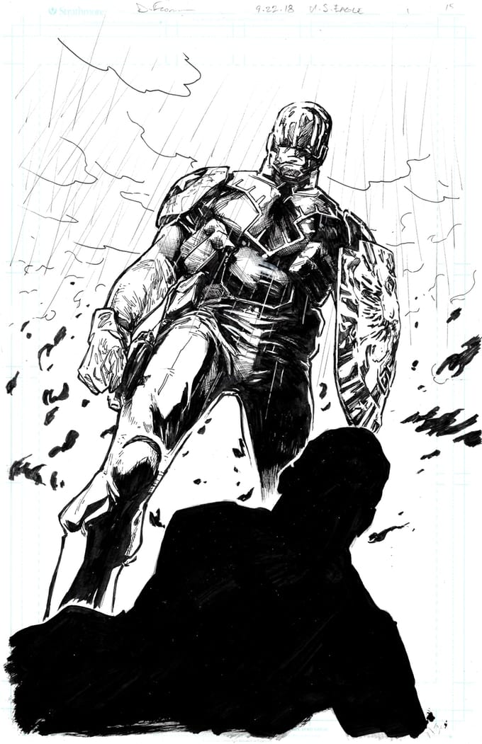 A oneshot story, it tells 'the last official mission of the USA's sole superhuman military operative, the US Eagle'.
