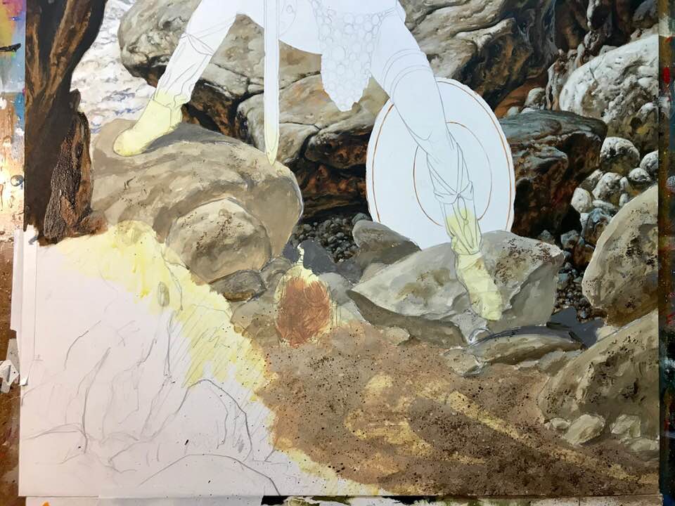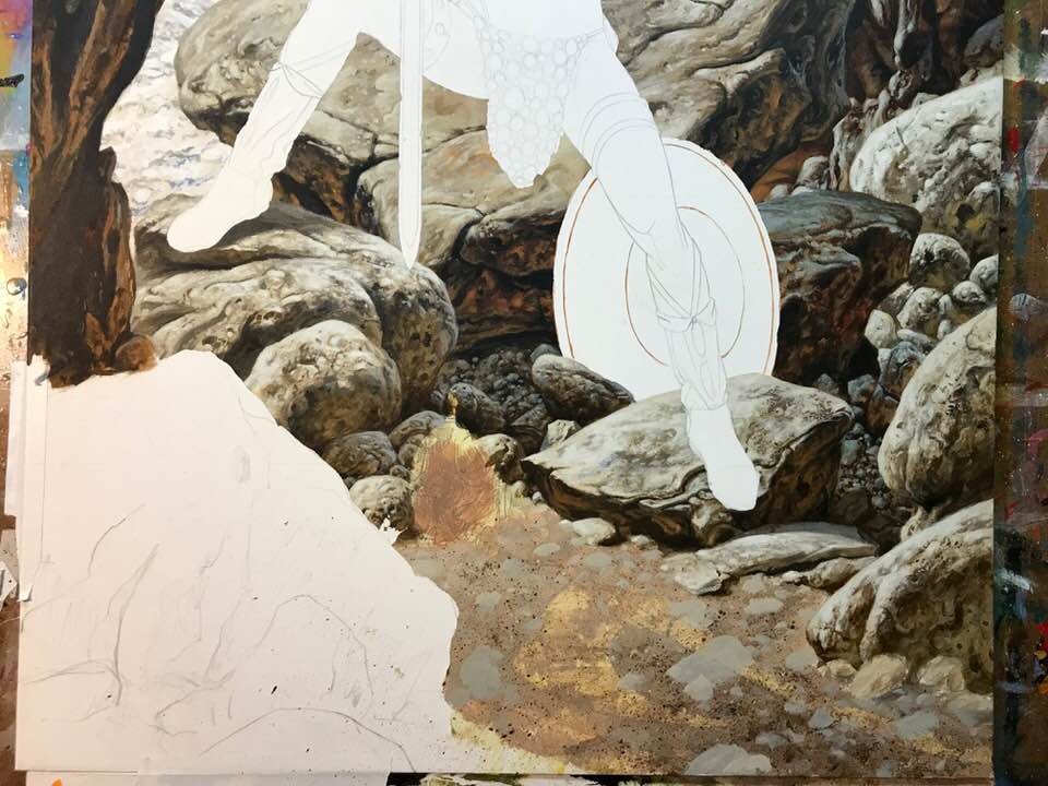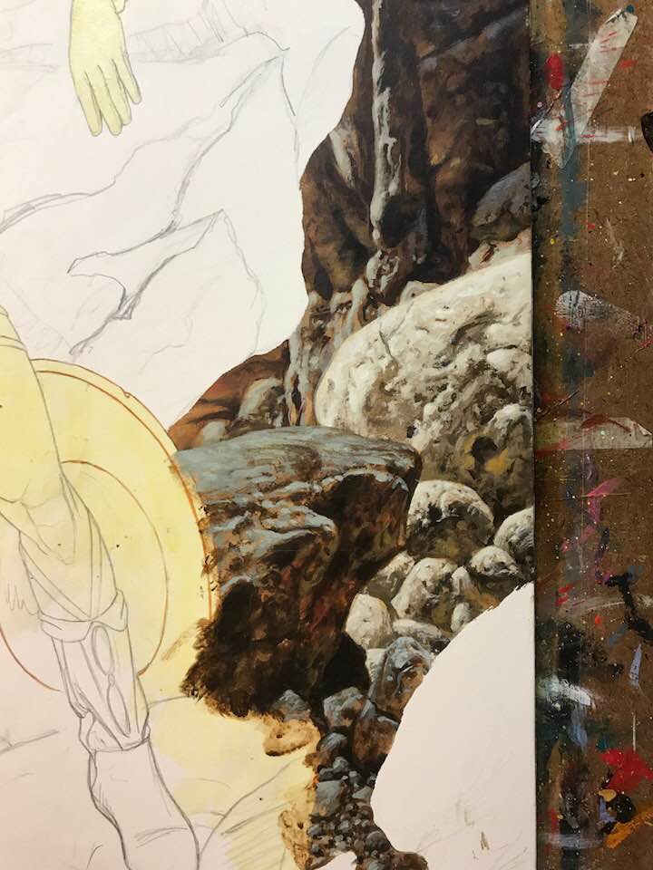 Jusko posted quite a few images showing each step along the way, and you can see his work in great detail in the images below. Just the amazing level of detail on the rocks and backgrounds is stunning.