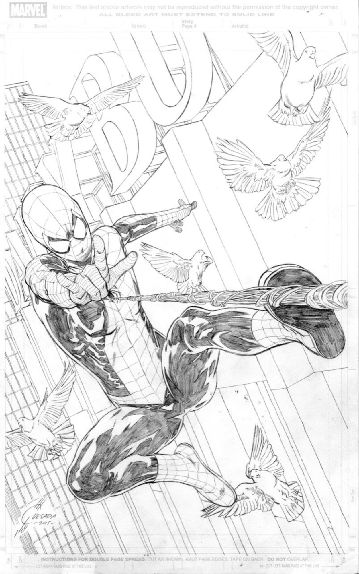 Amazing Spider-Man #24 by Nick Spencer and Ryan Ottley was solicited with Marvels 25th Variant covers by Mark Brooks and Alex Ross. The Mark Brooks one is still all engines go (below) but the planned Alex Ross has been replaced by one by Marvel's CCO Joe Quesada. Here are the pencils, inks and colours will come, but this is before the Final Order Cut-Off and they wanted to get this change registered by retailers in time. It is also no longer a Marvels 25th variant and will not carry that cover banner.