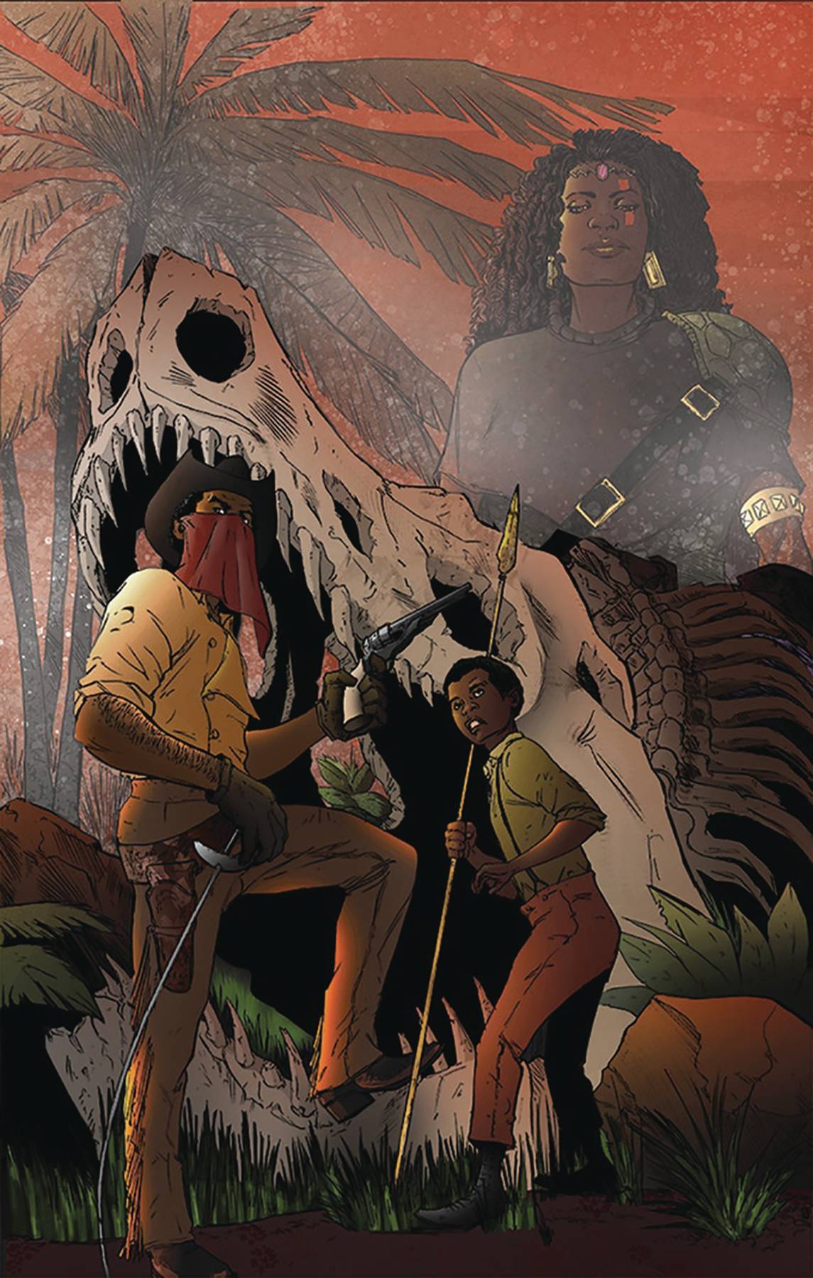Keith Lansdale unleashes his imagination on the historical and somewhat steampunk world his father Joe R. Lansdale and the late Sam Glanzman created back in 1999. Caleb Range (aka, The Red Mask), and his young companion Turon, find themselves under the surface of the Earth, in a place that seems lost in time. They are quickly confronted by a group of steampunk pirates in hot pursuit of a strange fellow who can only speak one name over and over again… Seetoc! Oh, and did we mention there are dinosaurs, lots and lots of dinosaurs!