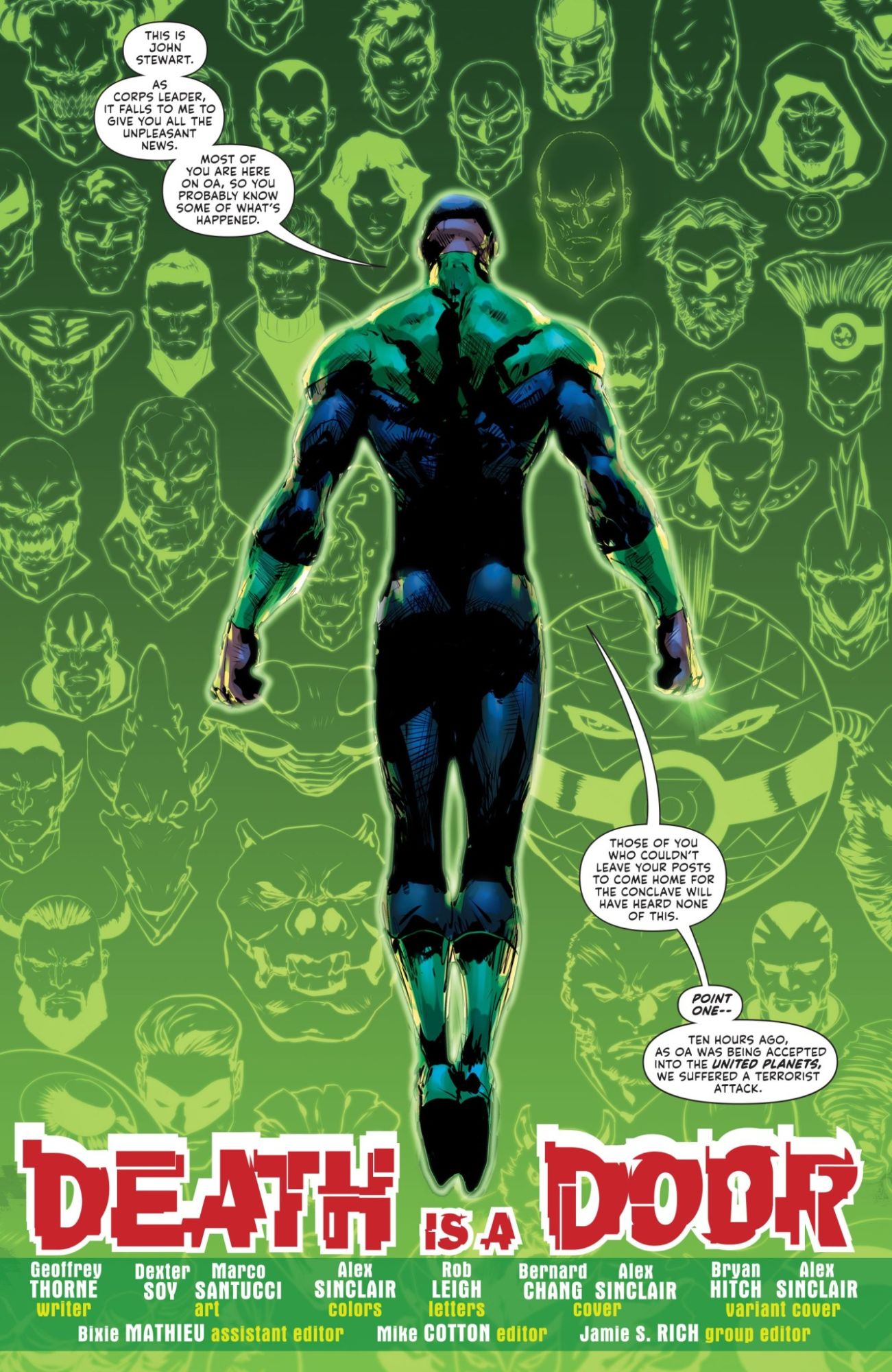 There's the fun part of being an intergalactic superhero — galavanting around space and stopping colorful bad guys with your magic ring — and then there's the not so fun part — letting people know that a character has died and they're not coming back until at least the next super-mega-crossover event, which could be months away in the current comics landscape. The latter is what we see of John Stewart in this preview of Green Lanterns #2. Check it out below.