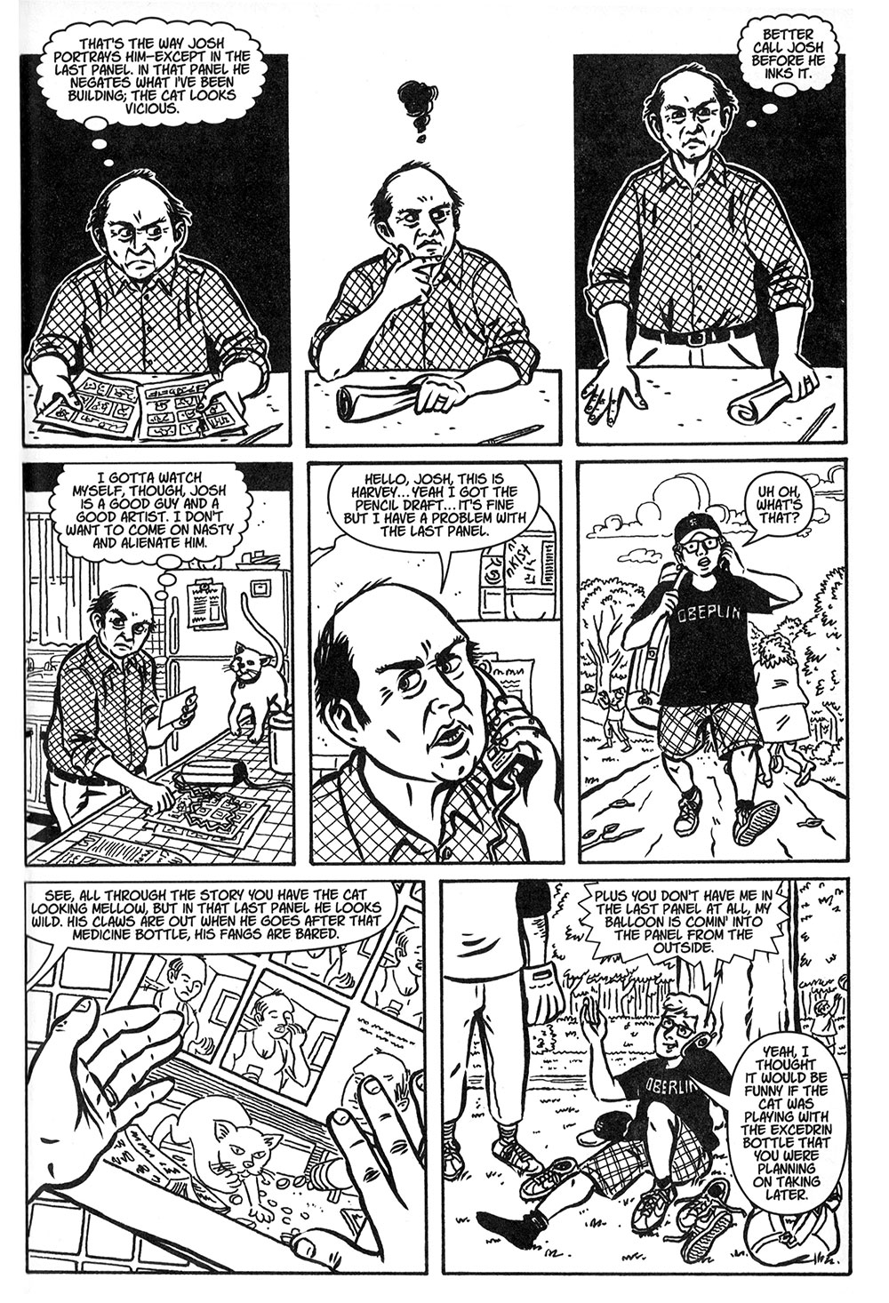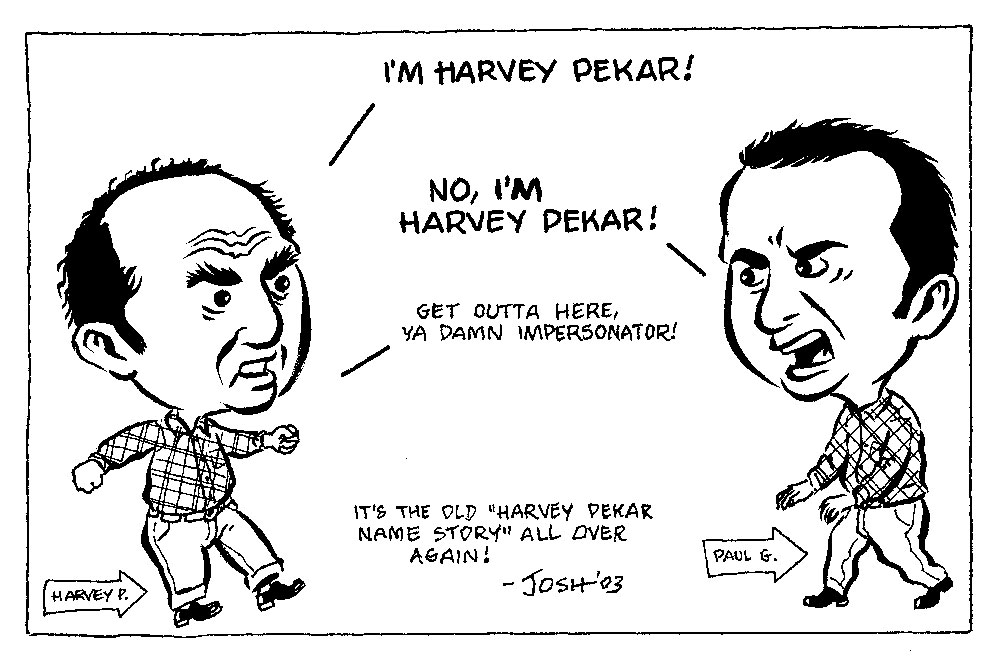 A little background, if you need it: Harvey Pekar (1939–2010), a Cleveland-based writer, popularized autobiographical comics with his long-running self-published series American Splendor, which debuted in 1976. Harvey's unflinching honesty and fascination with the minutiae of everyday life made him a working-class hero to millions of readers. Harvey worked with such acclaimed illustrators as R. Crumb, Joe Sacco, Drew Friedman, Spain Rodriguez, Ed Piskor, Frank Stack, and Jim Woodring — as well as Dino and myself. Harvey gained additional fame in the 1980s with a series of memorable appearances on Late Night with David Letterman. Later, Harvey and his wife Joyce Brabner co-wrote the award-winning graphic memoir Our Cancer Year (illustrated by Stack), about Harvey overcoming lymphoma.