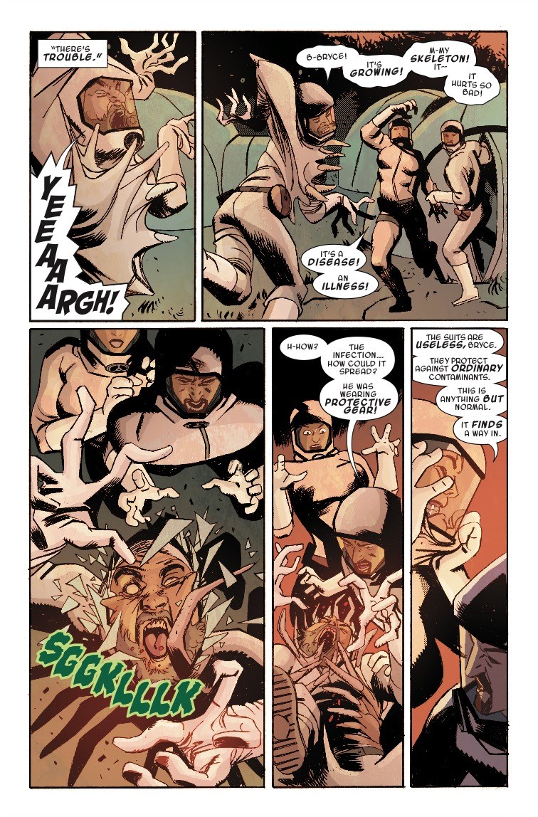 Marvel is celebrating its 80th-anniversary with a series of one-shots commemorating classic series of a bygone era, and next week sees the release of Journey Into Unknown Worlds, presenting some science fiction stories in the classic Marvel manner. One of those stories, shown in the preview below, features an alien infection that causes a person's skeleton to grow without their flesh matching.