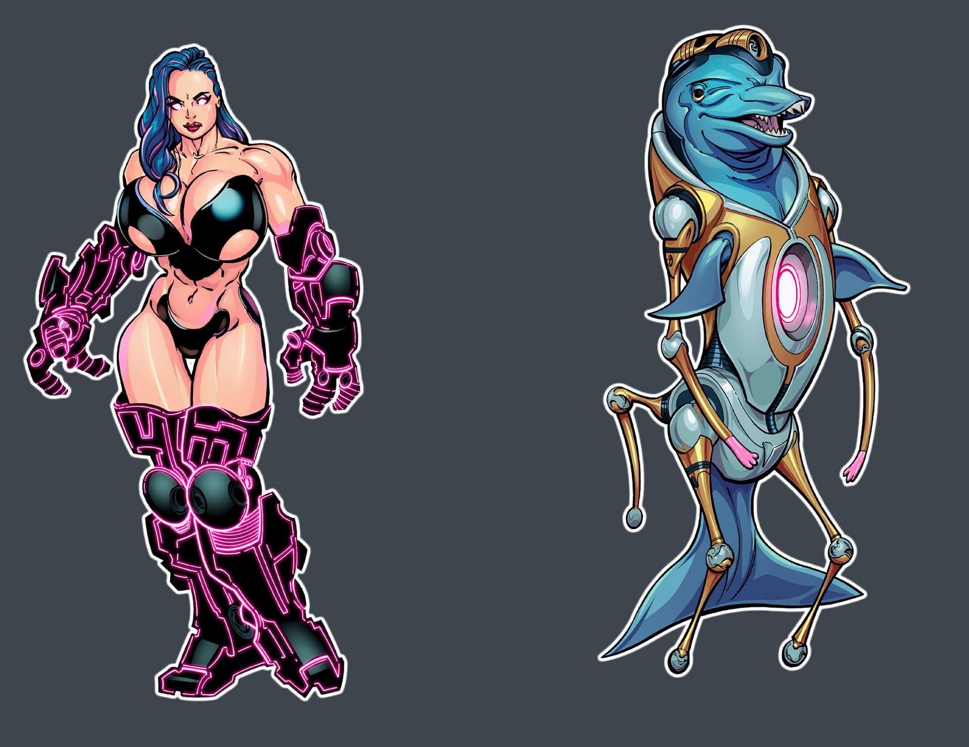 Sugar Bomb: Portal Potty is a new comic book from Bart Sears and Juan José Ryp, from new publisher Fun Time Go! and launching on Kickstarter, described as "an outrageous, chaos-blasted, sci-fi comedy about a cybernetic superhero and her wildly inappropriate dolphin sidekick." Basically, it's a time toilet.