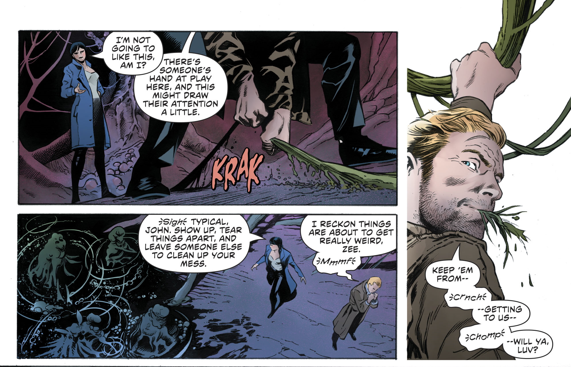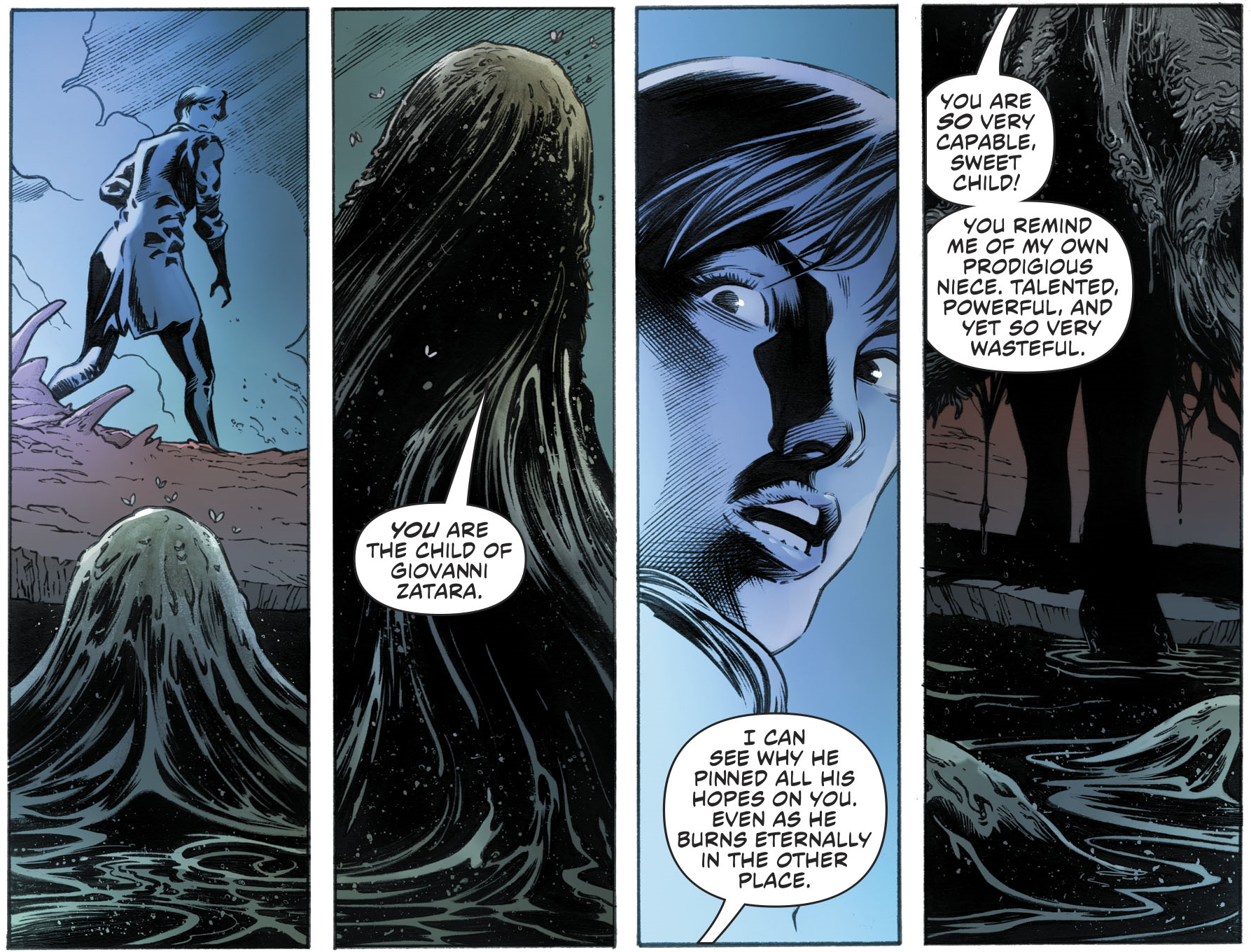 But it's the return of one figure, absent in life for that classic Swamp Thing run, but with a tendency to return in one hellish shape or form that gives this Justice League Dark comic direction and makes everyone wonder why they just don't call it Saga Of The Swamp Thing and be done with it…