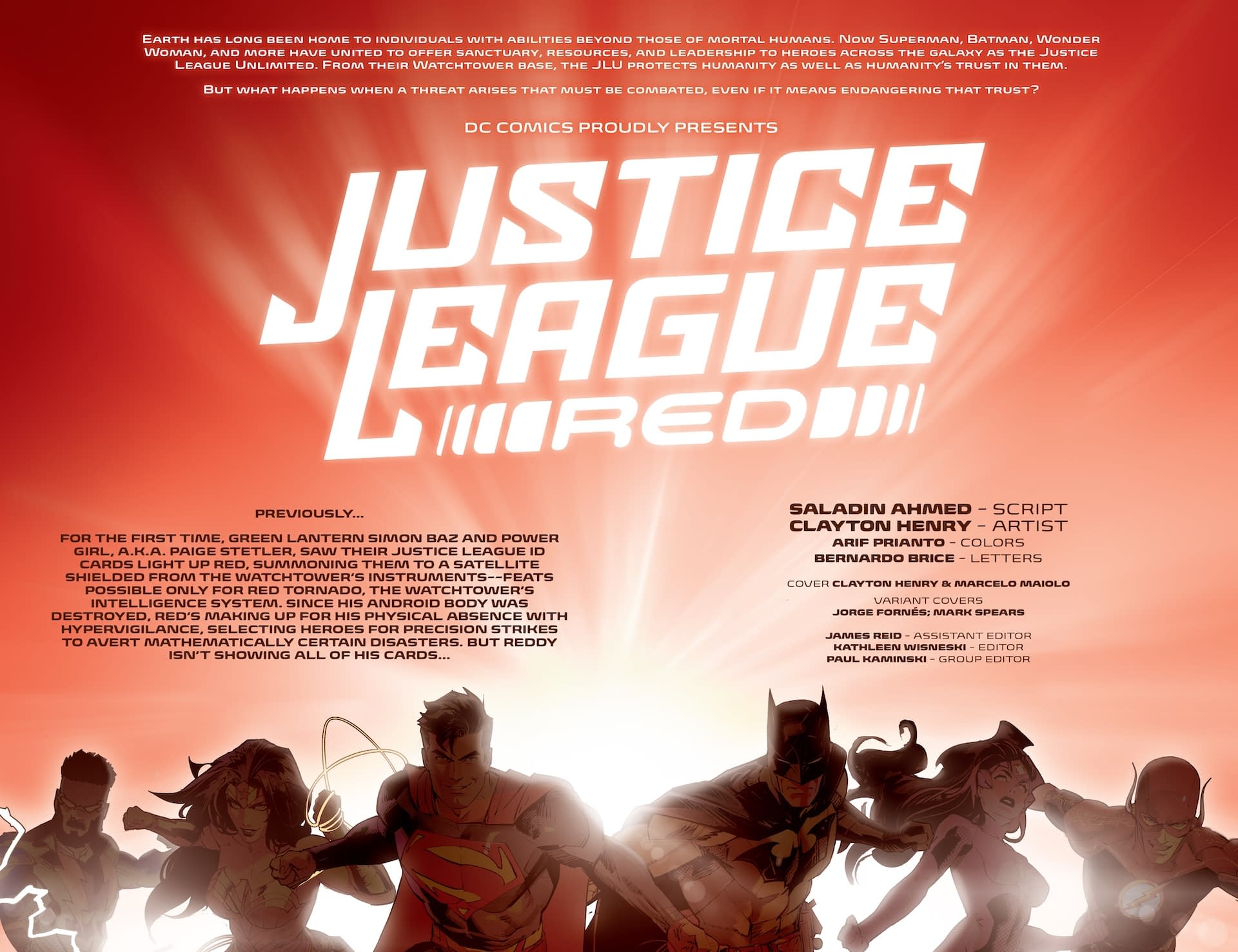 - Interior preview page from 0725DC100 Justice League Red #2 Cover, by (W) Saladin Ahmed (A/CA) Clayton Henry, in stores Wednesday, September 17, 2025 from DC Comics